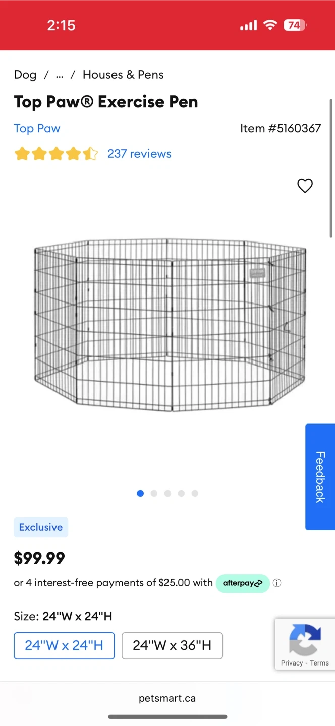Top Paw exercise pen and cover in great condition! 24" W x 24" H exercise pen. It helps keep your furry friend safe and secure while they play. Perfect for indoor or outdoor use. play pan and cover both $80