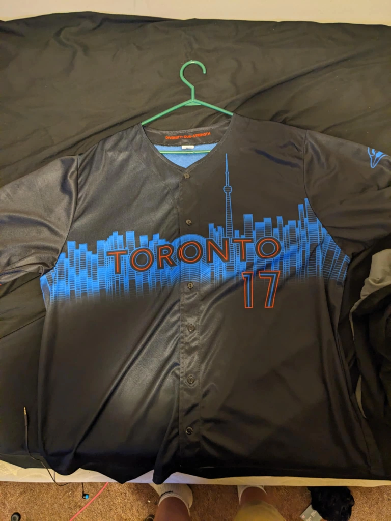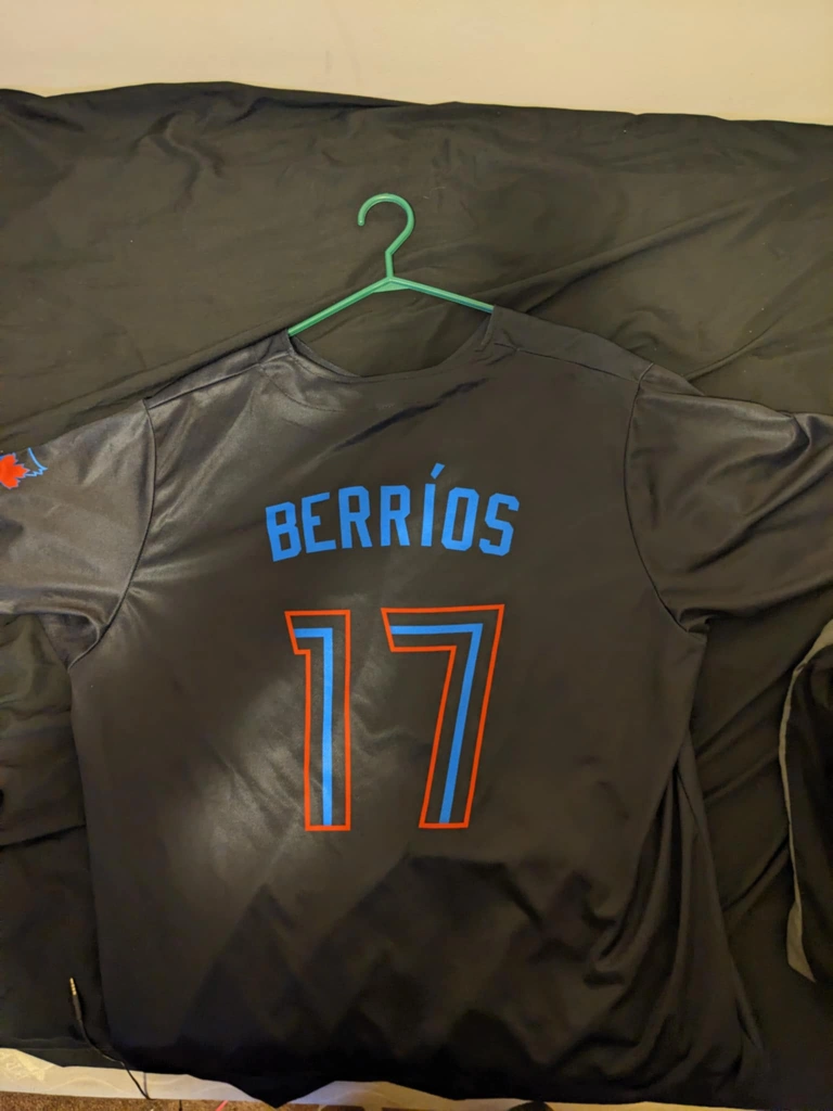 Selling a Toronto Blue Jays jersey with Berrios' name and number 17 on it. It features a cool design with the Toronto skyline. Perfect for showing your support at the Rogers Centre or just around town!