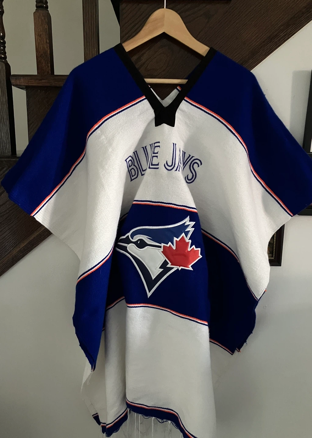 Show your Blue Jays pride with this cozy poncho! It features the team logo and colours, perfect for game days or just lounging around. It's in great condition and ready for a new home!