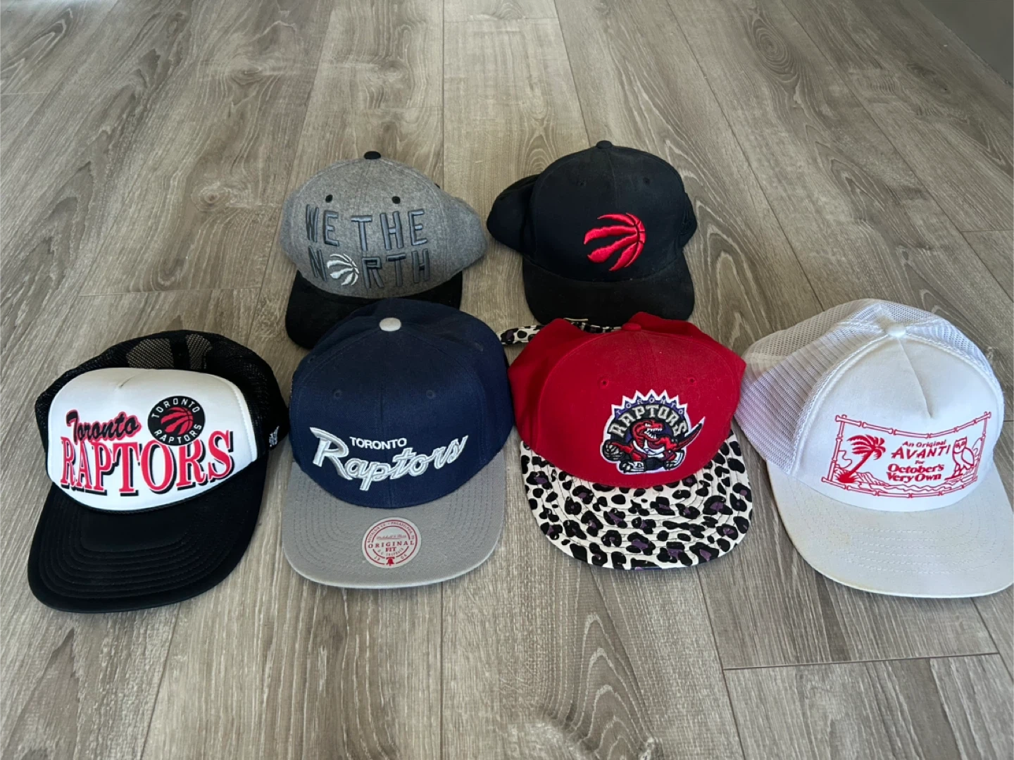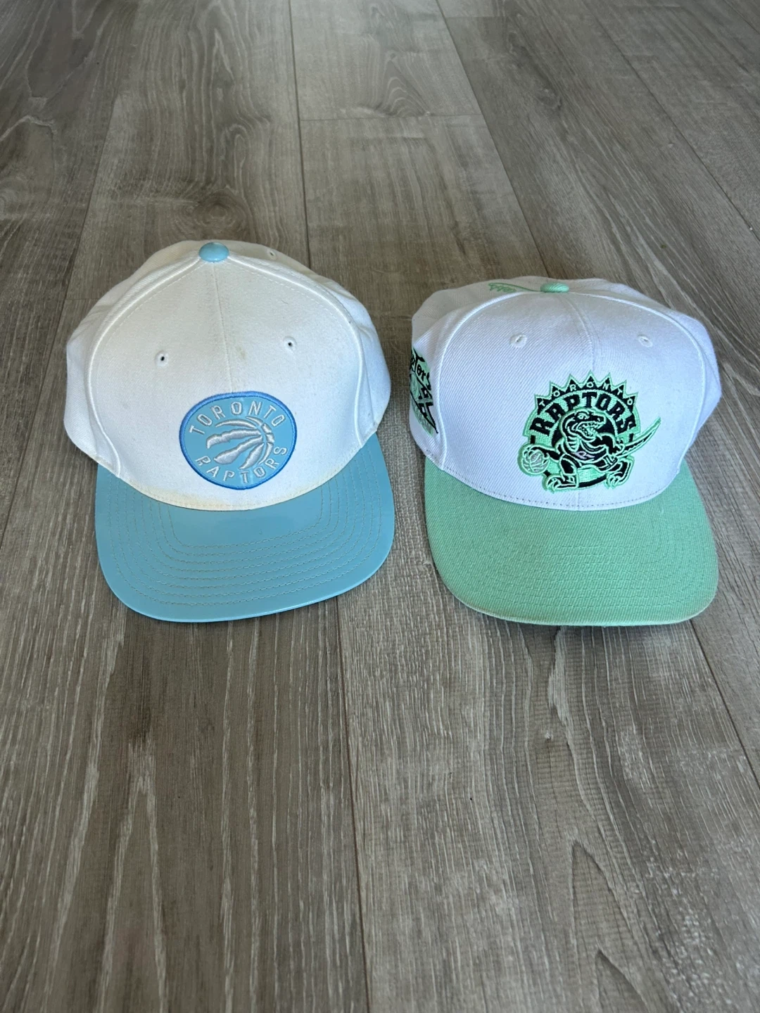 Selling Toronto Raptors hats! There's a variety of styles and designs. One of the hats is a Mitchell & Ness brand. Perfect for any Raptors fan!