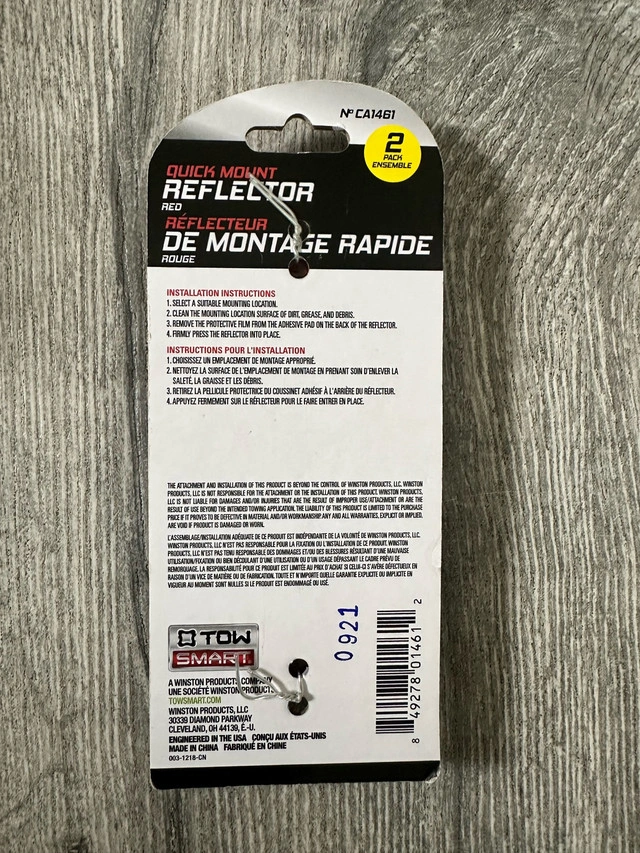 Enhance your trailer's visibility with this new Tow Smart Quick Mount Reflector set. These reflectors are designed for easy and secure mounting, ensuring your trailer is seen clearly, day or night. Perfect for increasing safety on the road, they're a must-have for any trailer owner. * Quick mount design * Red Reflectors * Easy install Looking to add a bit of sparkle and shine to your trailer? These reflectors are just the ticket! I am asking $10