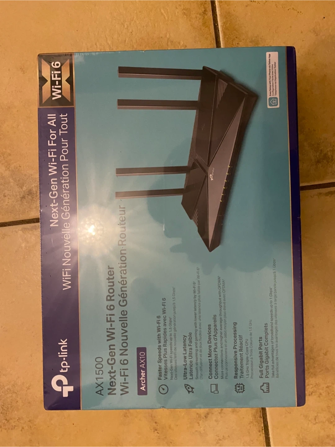 Selling a brand new TP-Link AX1500 Archer AX10 Wi-Fi 6 Router! - Next-Gen Wi-Fi 6 Router - Faster Speeds with Wi-Fi 6 - Ultra-Low Latency - Connect More Devices - Responsive Processing - Full Gigabit Ports New never open time pass to return it