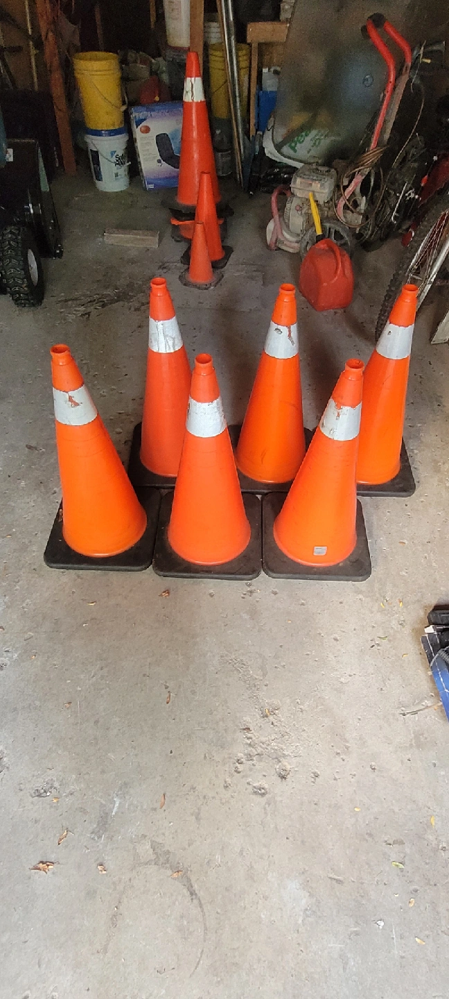 Selling a set of 7 orange traffic cones. They are in good condition and ready to be used for any traffic or safety needs!