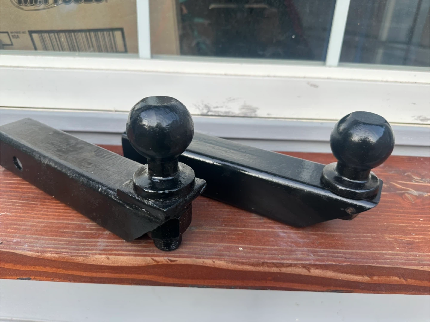 Selling a pair of trailer hitch balls in black. They look to be in good condition and ready for use!