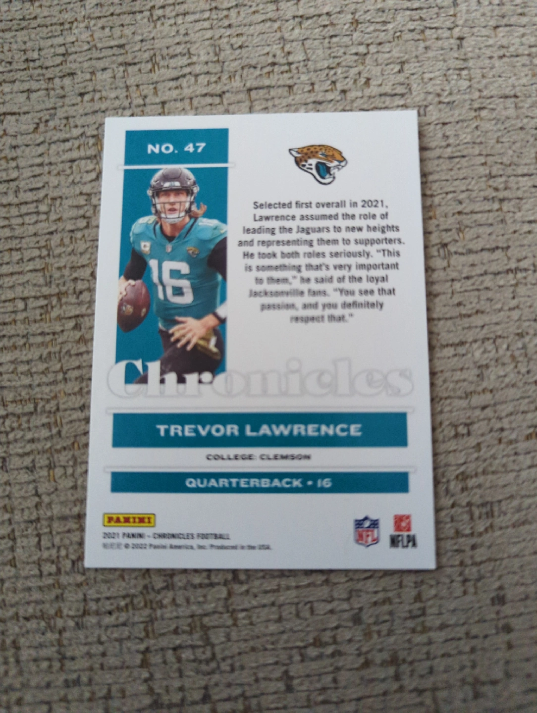 Selling a Trevor Lawrence Base Rookie Card. The card is from the 2021 Panini Chronicles Football series. A great addition for any football card collector!