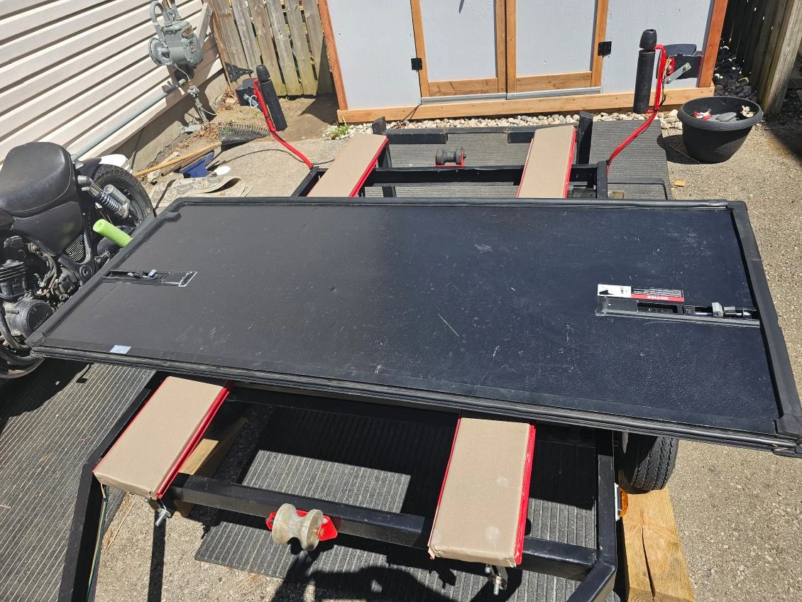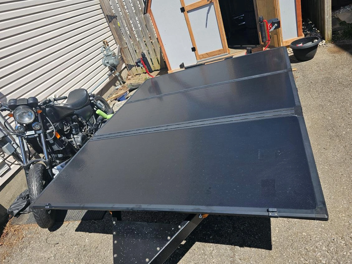 Selling a truck bed cover in black. It's in great shape and ready to keep your cargo safe and dry! cover is off a full sized box of a Ford F150