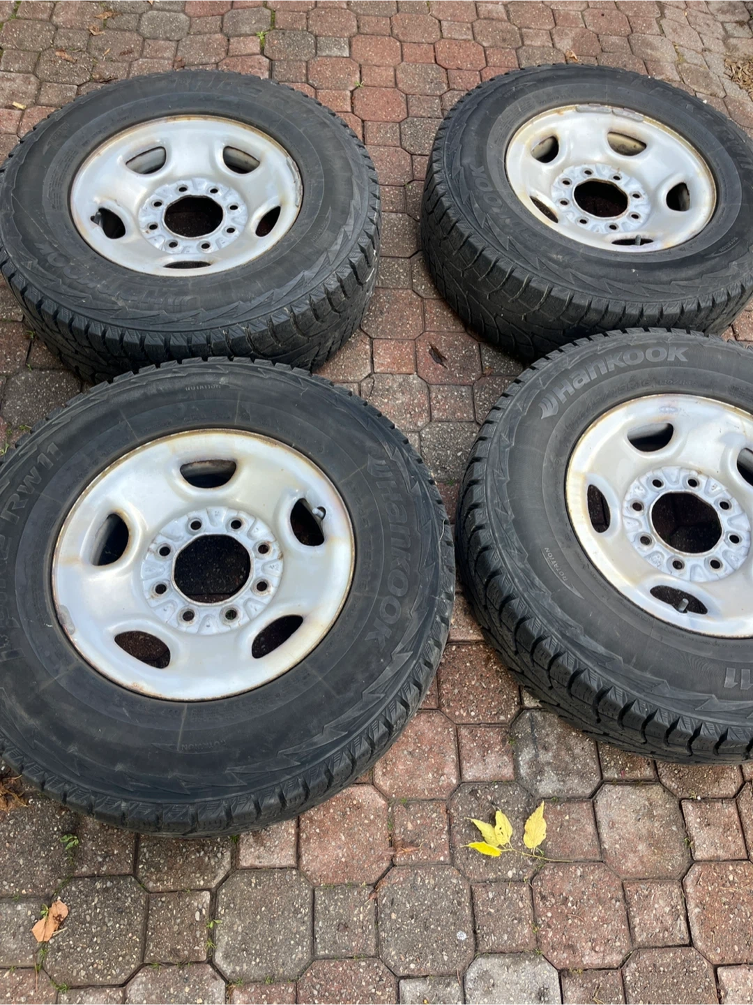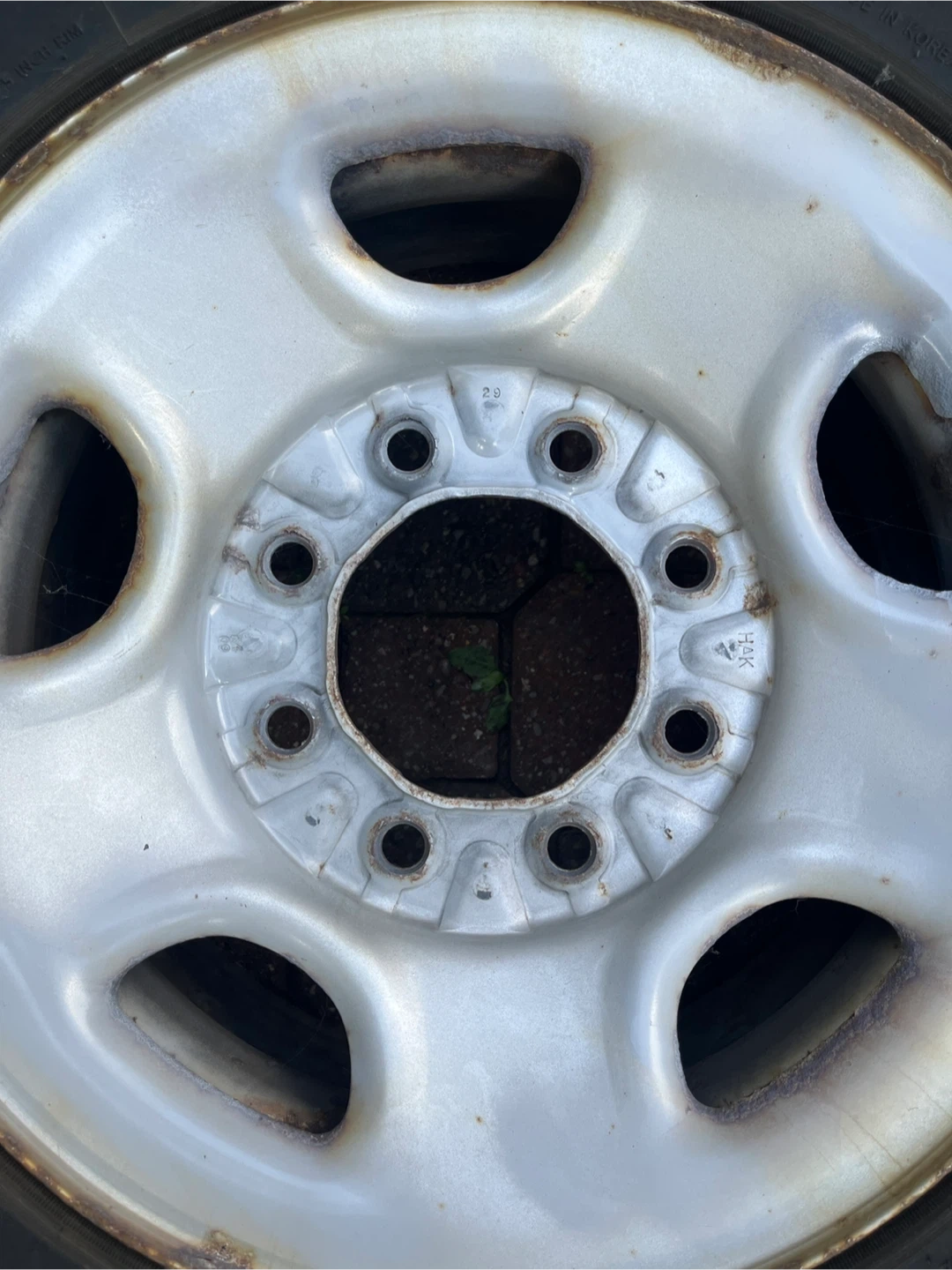 Price is for all 4. Rims for truck. 8 lug. bolt pattern is 8x165. It has some minor rust but still very good. old winter tires on them LT245/75R16.