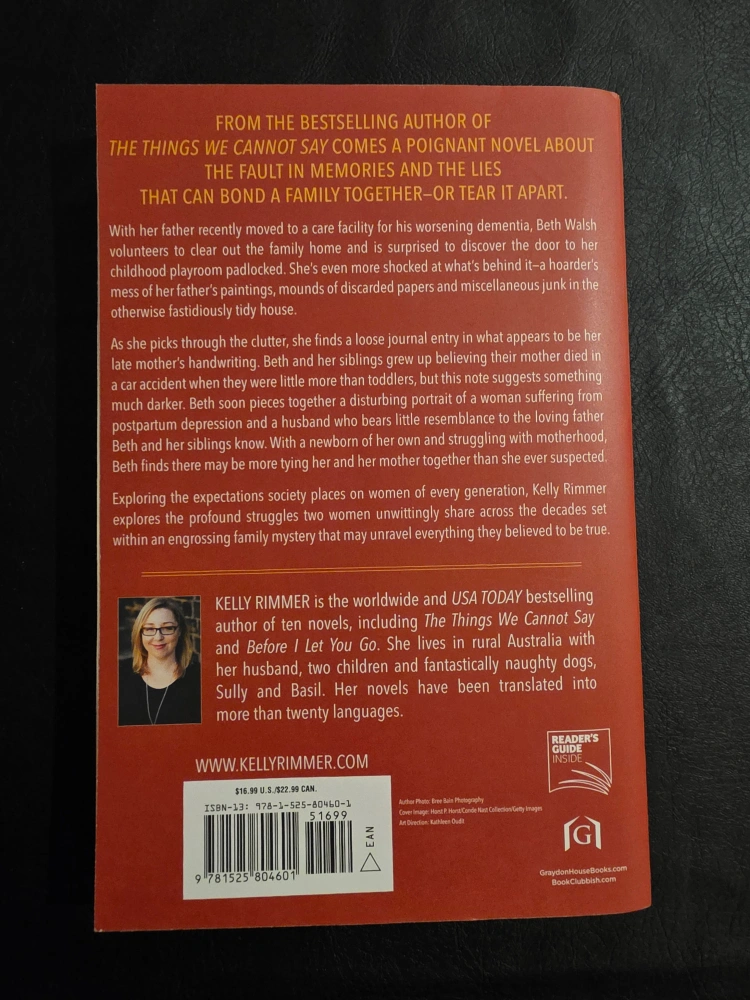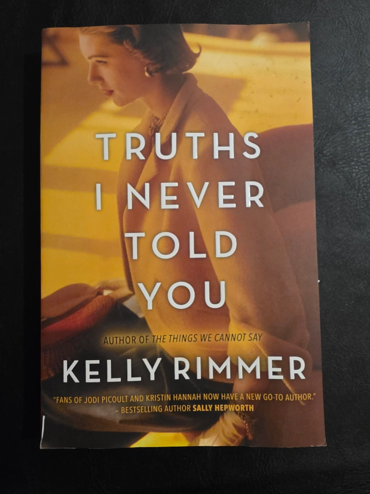 Selling the book 'Truths I Never Told You' by Kelly Rimmer! It's a poignant novel about family secrets and the struggles of women across generations. A great read for anyone who enjoys family mysteries and emotional stories