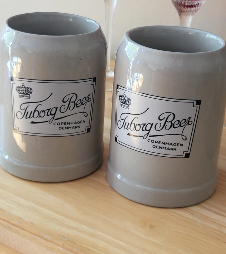 Here's a set of two Tuborg Beer stein mugs. They're in great shape and ready for your next get-together or to add to your collection!
