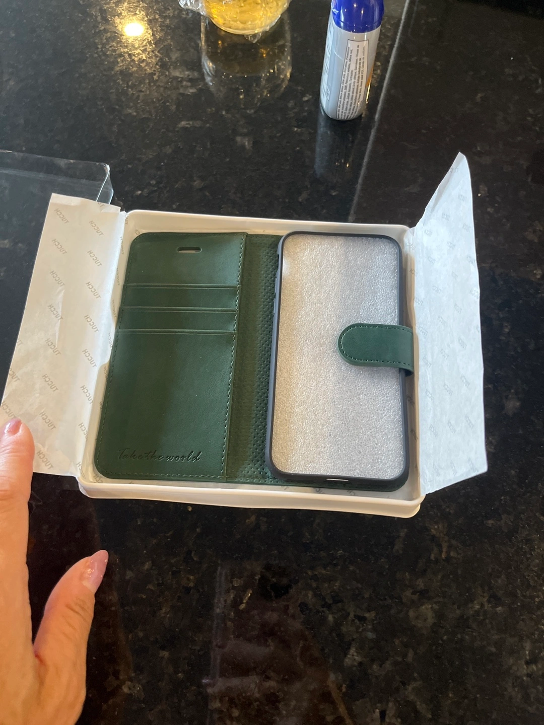 Brand new TUCCH iPhone 13 Pro Max wallet case! It's a stylish and functional case with a beautiful green colour. The box is included, so it would make a great gift for someone