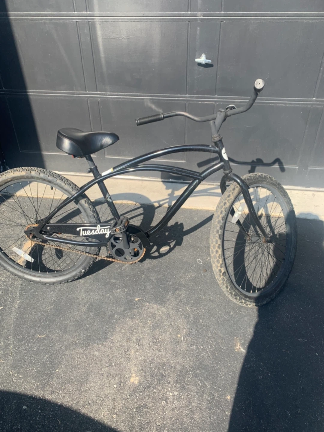 Selling a black beach cruiser bike from Tuesday Cycles. It's perfect for cruising around town or enjoying a leisurely ride along the beach. The bike is in good condition.