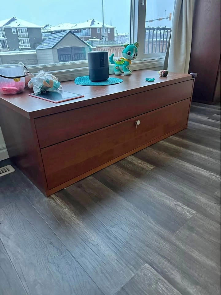 Solid wood TV stand with lots of storage in Excellent condition with 2 storage cabinets. Pickup in Hillcrest Airdrie