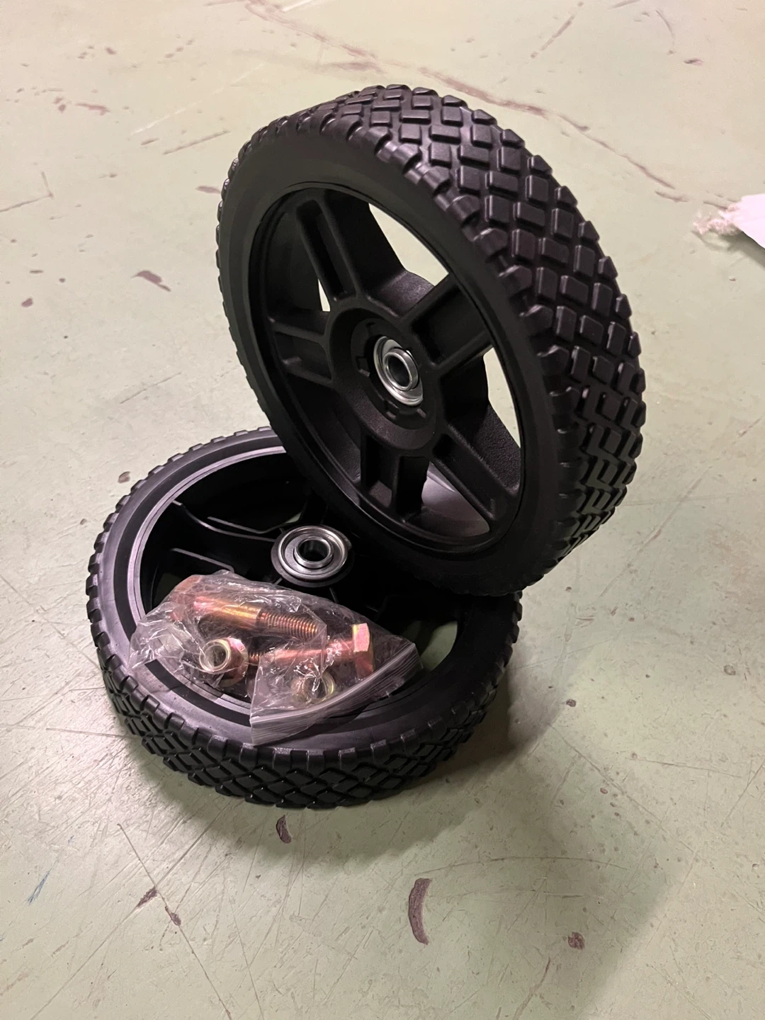 Two Black Wheels 8 inch lawn mower with bolts and nuts