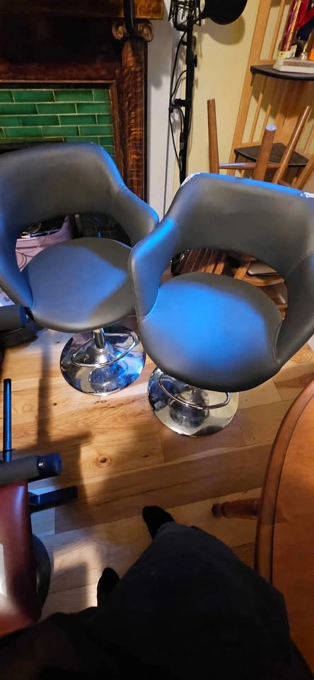 Very comfortable back and arm rests Adjustable height 360 swivel Nothing wrong with the structure Some wear on the corners of both chairs shown in photos above Feel free to message if you have any questions!