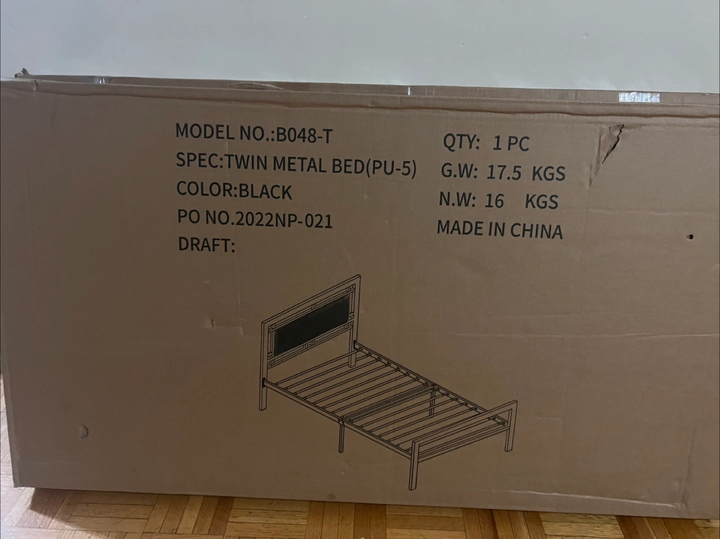 Selling a brand new twin metal bed, still in its original packaging! The bed is black and ready for easy assembly. The box includes all components for a quick setup