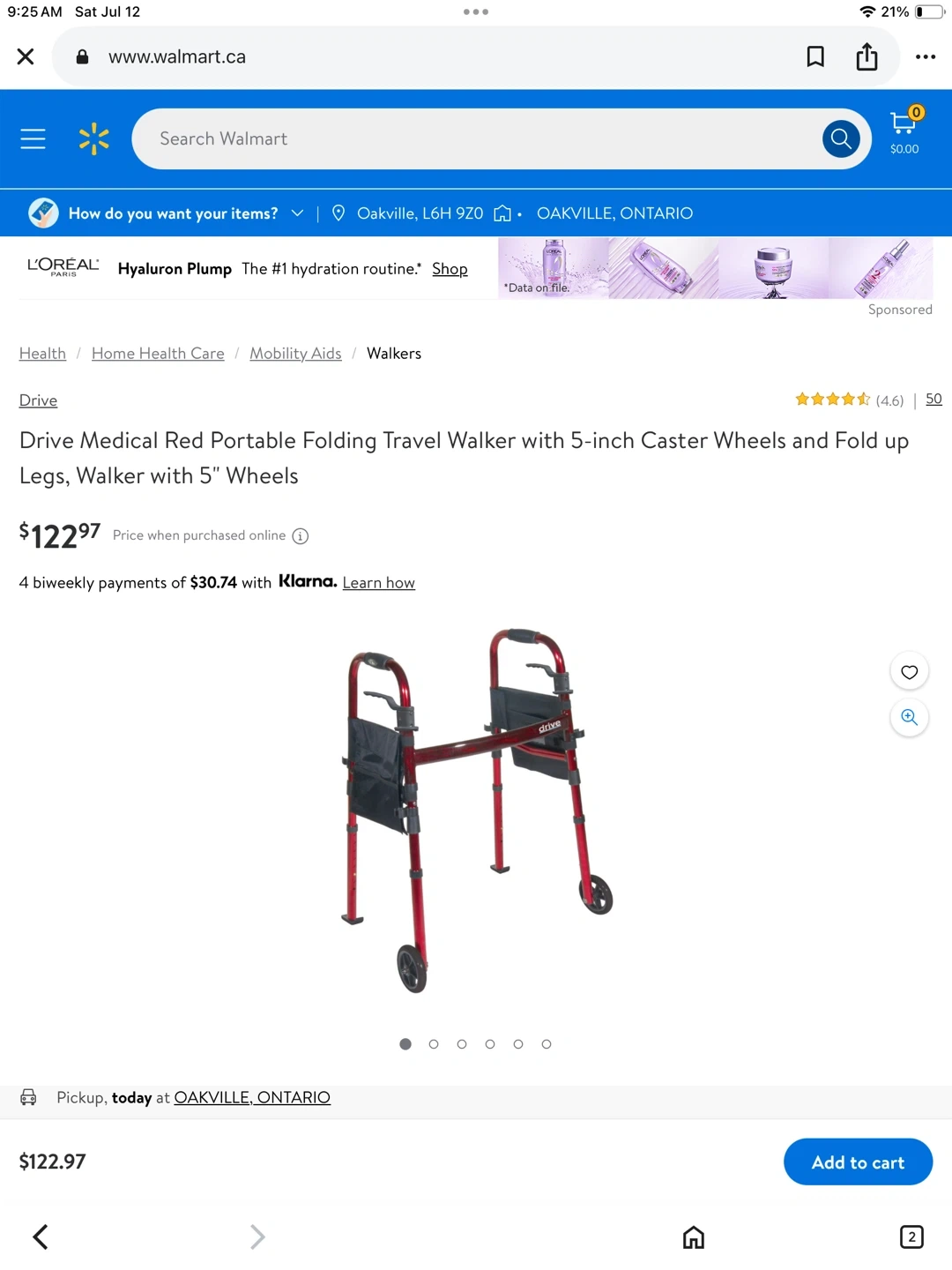 PICK UP ONLY IN OAKVILLE ON CALLAGHAN CRESCENT. $60 FIRM. In great condition. Adjustable,foldable and lightweight. More suitable for indoor use. Smoke and pet free home.