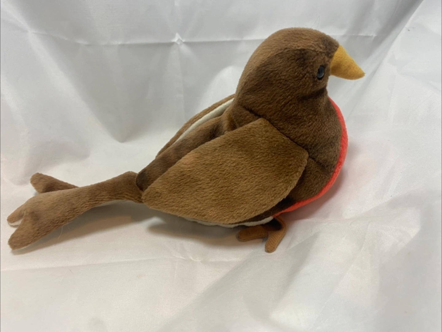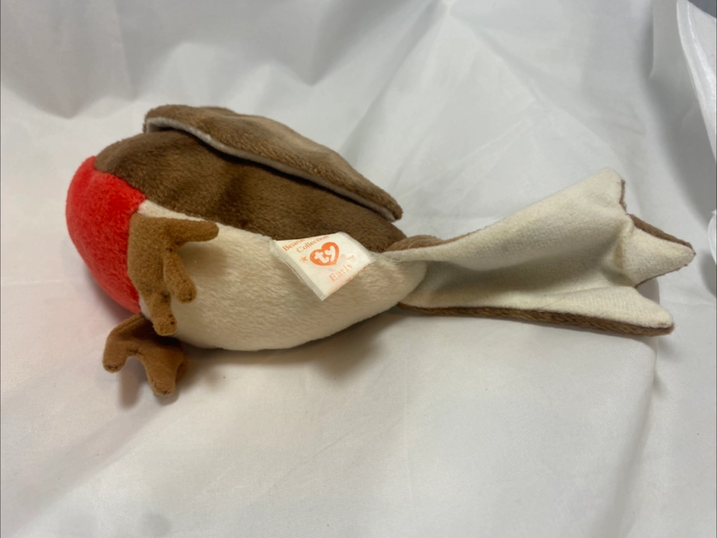 Sitting at a quaint 4.5 inches, Ty's Early the Robin is a delightful addition to any collector's assemblage of Beanies. The iconic brand ensures a plush that's as cuddly as it is collectible. Belonging to the original line of retired Beanies, this piece holds a special place in the hearts of enthusiasts who appreciate the nostalgia and craftsmanship of Ty's beloved creations. Early the Robin is more than just a plush; it's a snapshot of the cherished memories from the past. Ideal for both gifting and adding to your own collection, this Beanie Baby is a charming representation of the timeless toys that have sparked joy and imagination for generations.