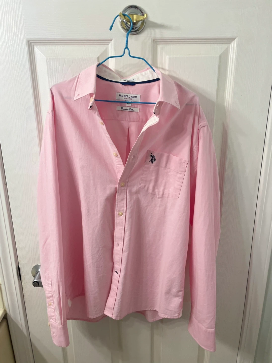 Selling a pink long sleeve shirt from U.S. Polo Assn. It's in great condition and made of premium cotton. Perfect for a casual or dressed-up look!