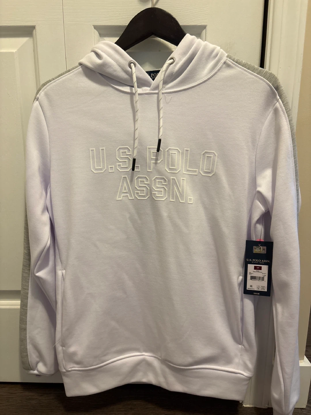 Selling a U.S. Polo Assn. hoodie in white with grey accents! It's a size small and lbrand new with tags still attached. Perfect for staying cozy and stylish!