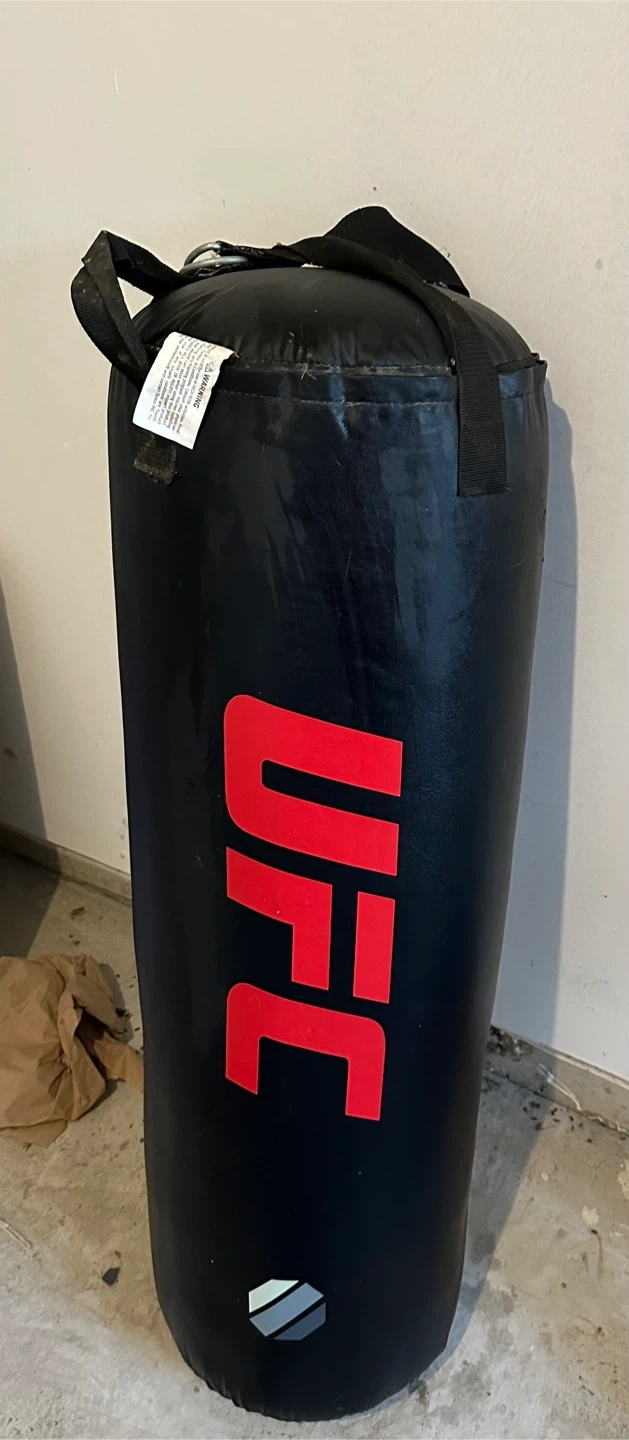 Selling a black UFC punching bag. It's in great shape and ready for a new home. Perfect for getting in a good workout at home! Comes with hanging chain, and a spring to absorb some of the weight.