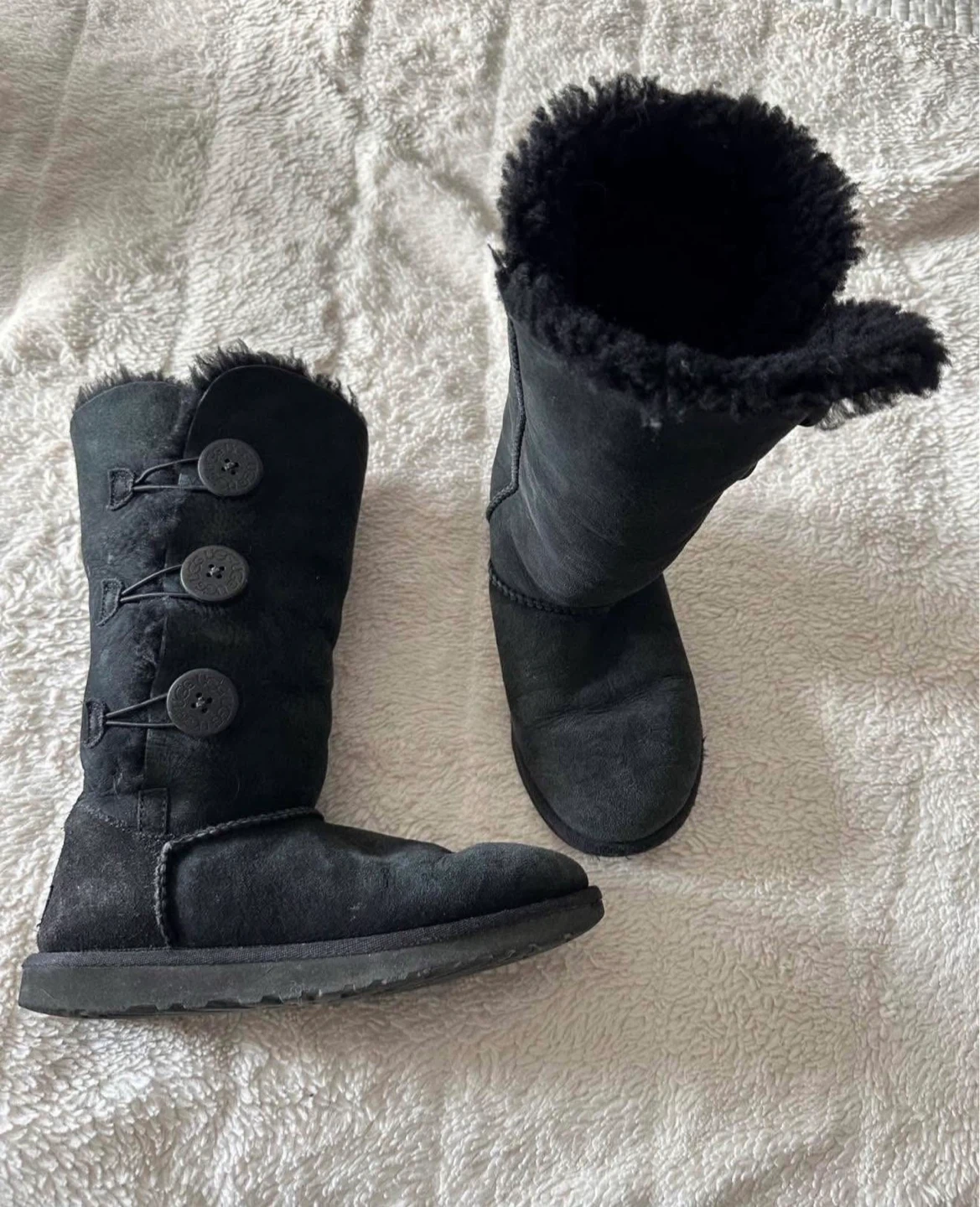 Selling a pair of UGG Bailey Button boots in black. They are a size 6 and have the classic UGG button detailing. These boots are super comfy and perfect for the colder weather! They are used but lots of wear still left - priced to sell Pickup near Hwy 7 and Weston Rd No holds, delivery or trades