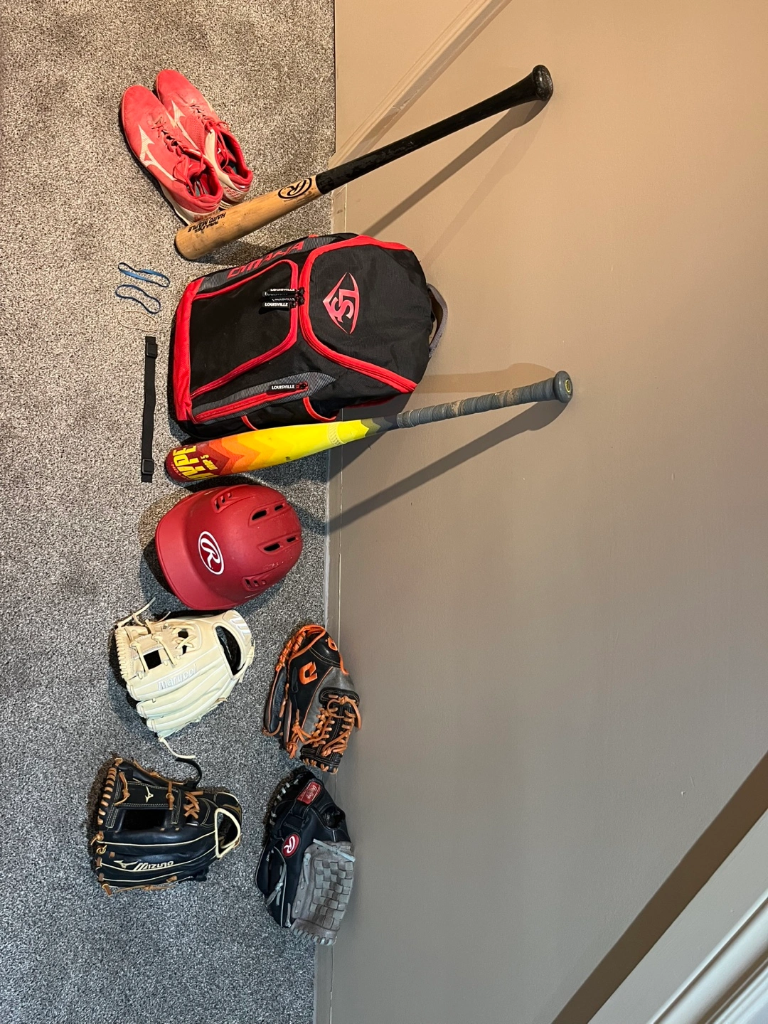Get ready to hit the field with this ultimate baseball package! This comprehensive set includes everything you need for a great season. This set has various items, including a bag, mitts, batting helmet and bats! This is a used set but I would like to find it a new home. Package Includes: * Easton hype fire 31 inch drop 5 -$230 * Louisville slugger wood bat -$35 * Louisville slugger back pack -$30 * Marucci 11.25 infielders glove -$250 * Mizuno 11.5 infielders glove -$65 * Demarini 11.25 infielders glove -$30 * Rawlings 12.5 pitchers glove -$35 * Rawlings helmet -$15 * Mizuno cleats size 9.5 men’s and little worn -$10 * Chin strap -$5 This baseball equipment is ready for action! Don't miss out on this fantastic deal. Valued at approximately over $1000, I'm offering this complete package for $630. If the ad's still up, the baseballs are still up for grabs! If you would like to purchase any individual items or like any other photos of items just message me. I am willing to negotiate prices a lot.