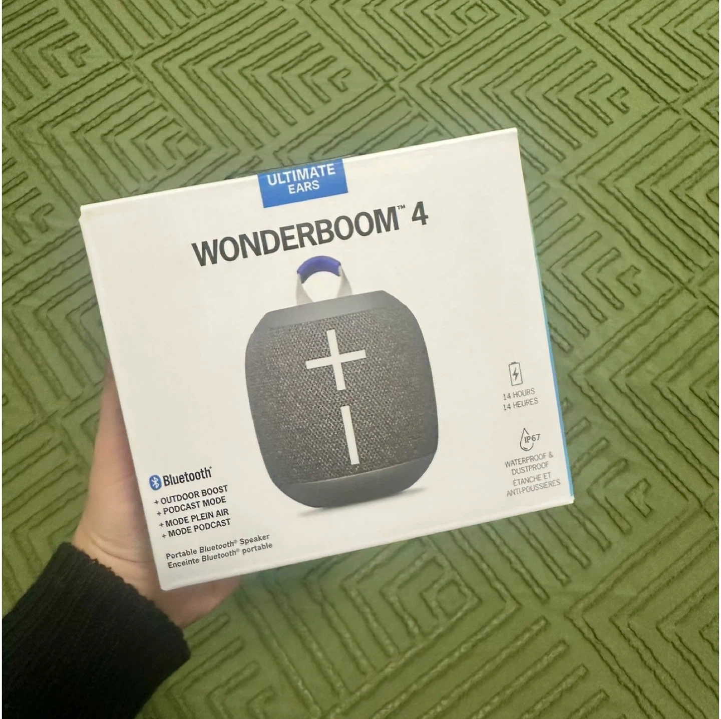 Experience rich, clear sound with this new Ultimate Ears Wonderboom 4 Bluetooth speaker. It's durable, waterproof, and perfect for any adventure, delivering up to 14 hours of continuous audio. Key features include: * Outdoor Boost * Podcast Mode * Mode Plein Air * Bluetooth Connectivity This speaker is in new condition, ready to bring your favourite tunes to life, wherever you go! Hot tip: if the ad's up, it's up for grabs!