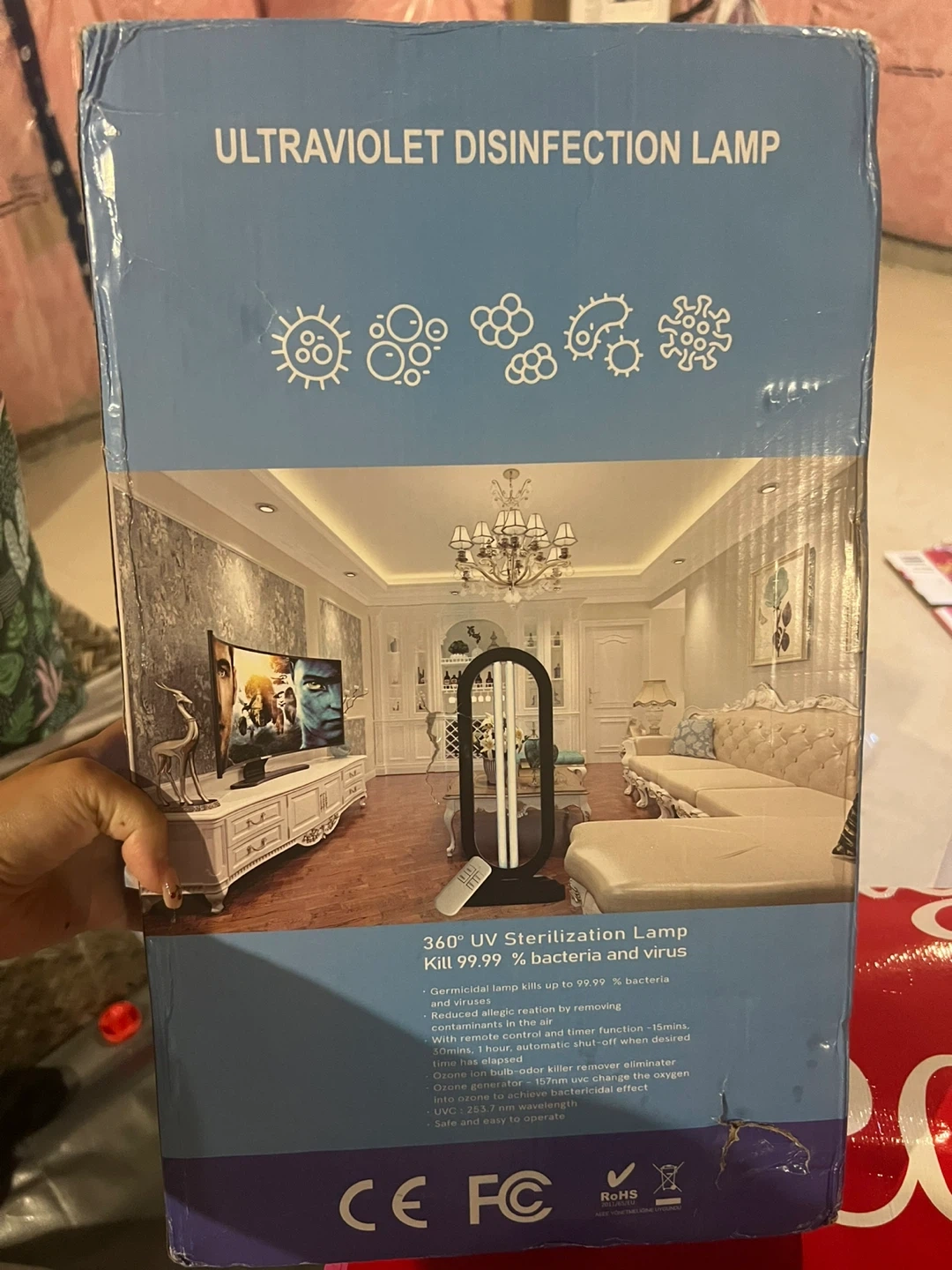 Selling an ultraviolet disinfection lamp! This 360° UV sterilization lamp kills 99.99% of bacteria and viruses. It helps reduce allergic reactions by removing dust mites. It also has a remote control with a timer function of 15 minutes and automatic shut-off when desired. It is safe and easy to operate and even eliminates multi-odor killers by converting oxygen into ozone to achieve a bactericidal effect
