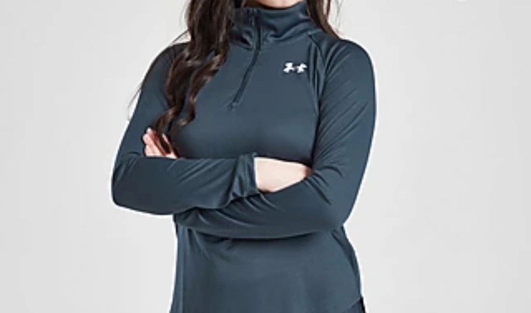 Women's athletic top. 1/2 zip. Long sleeves. Dark teal colour. Logo is also teal not silver