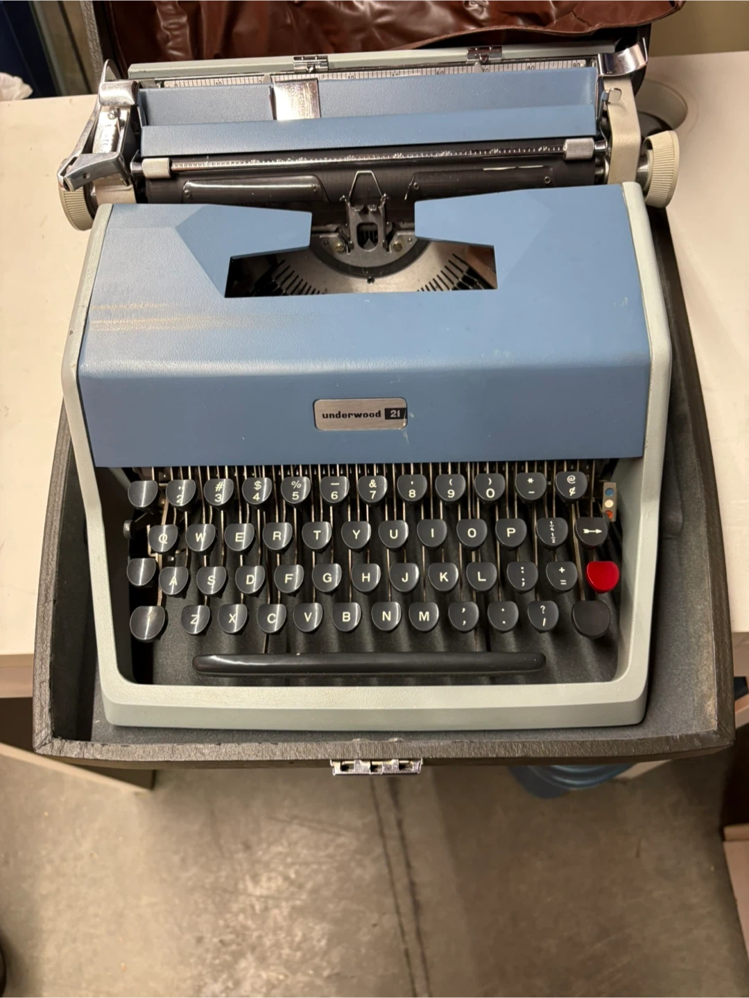 Selling a vintage Underwood 21 typewriter! This classic piece is in great condition and comes with its original case. A perfect addition for collectors or anyone who appreciates the charm of old-fashioned writing
