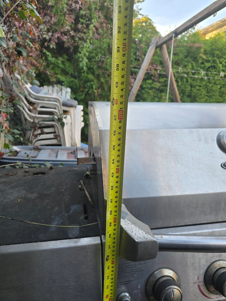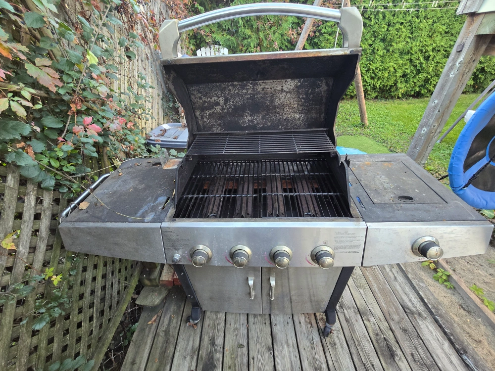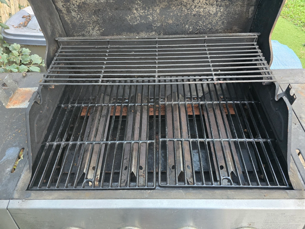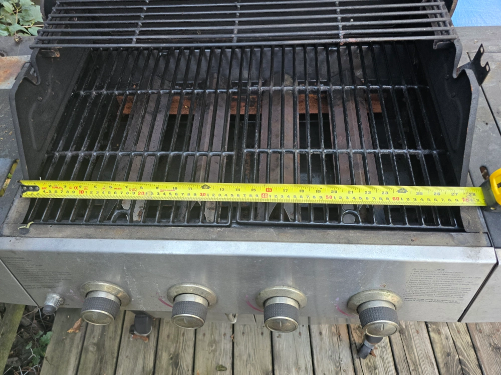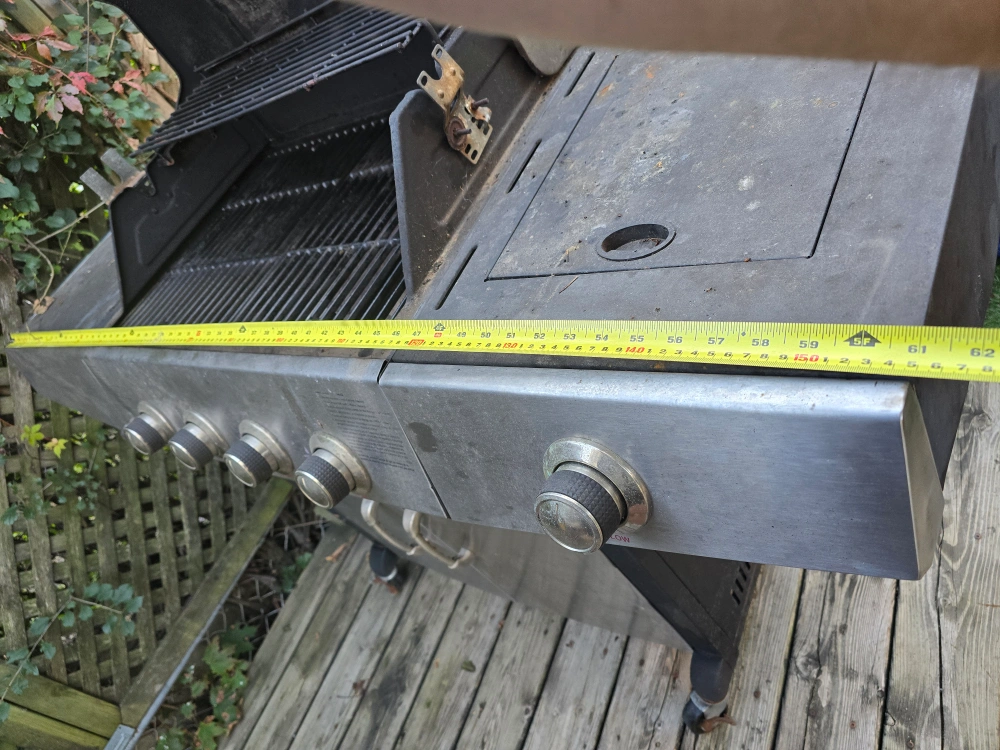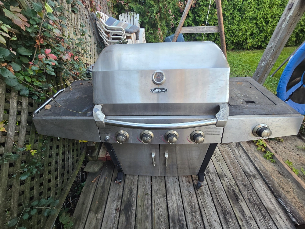 Selling a used UniFlame gas grill. It has some wear and tear, but it's still functional. The grill measures approximately 62 inches in length.