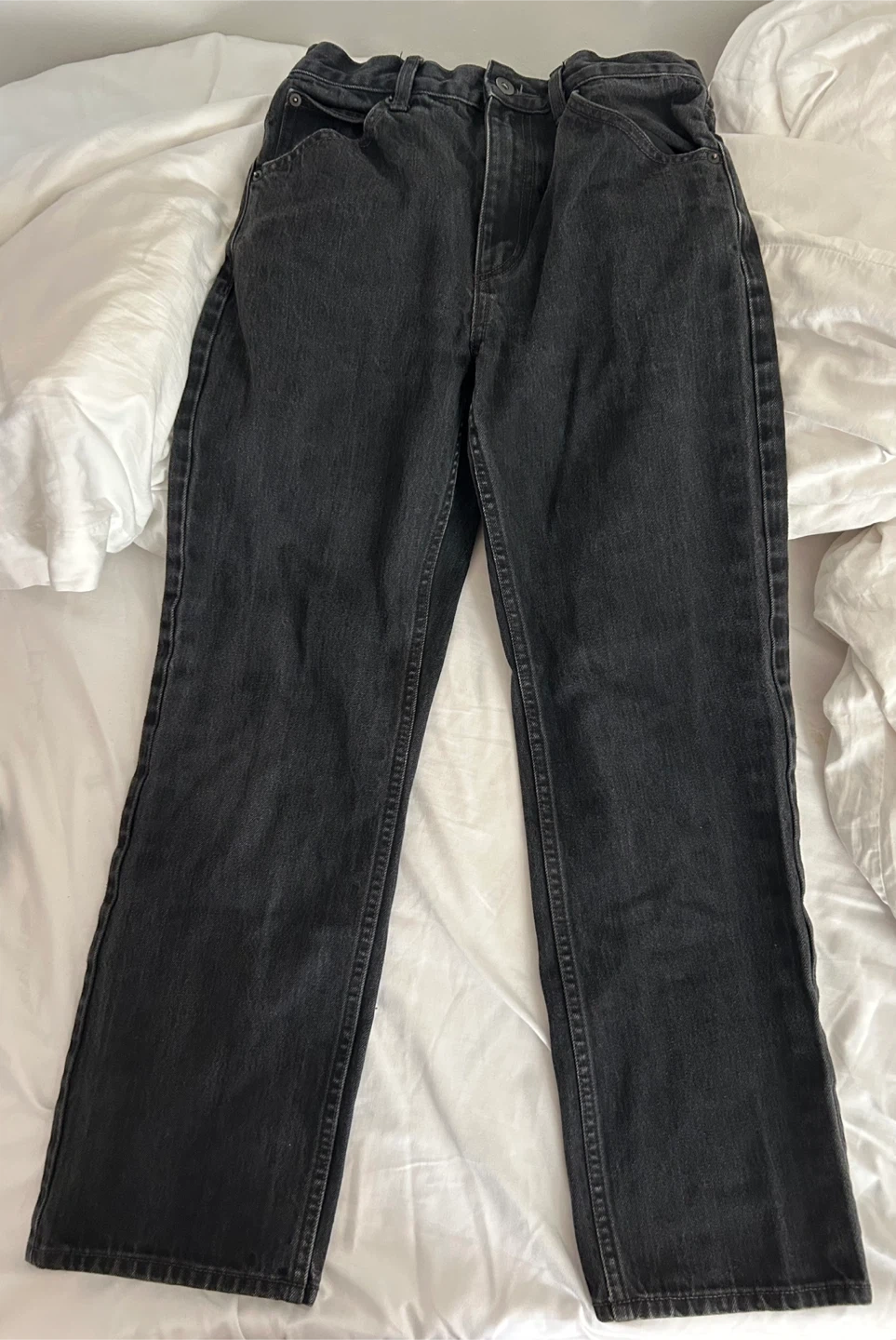 Selling a pair of Uniqlo U jeans in black. They're in great condition and ready for a new home! Waist is a 24 inch and would fit 5’0-5’2 best.