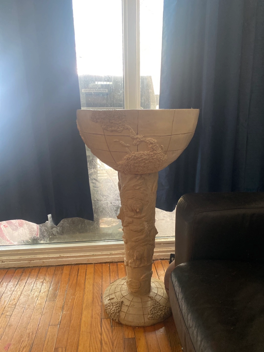 Selling a unique plant stand with a globe design. It's a real conversation starter and adds a touch of whimsy to any room. Perfect for displaying your favourite plants! They are a pair so there’s 2 there roughly 30 lb each 60 for the pair