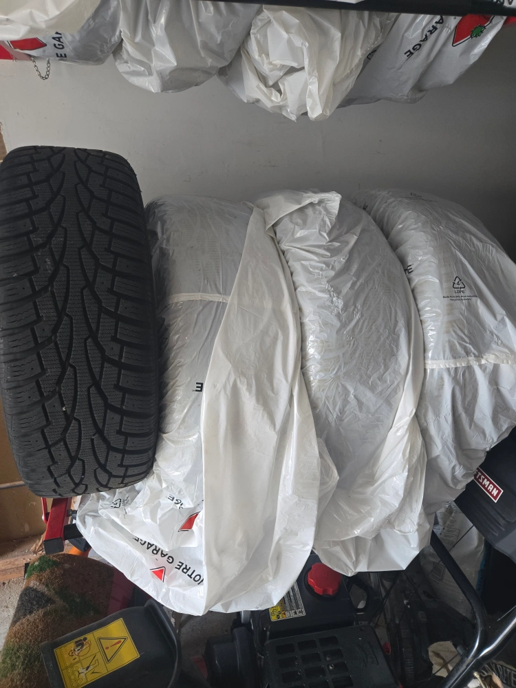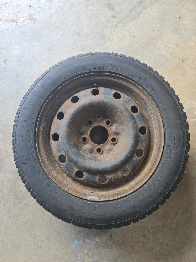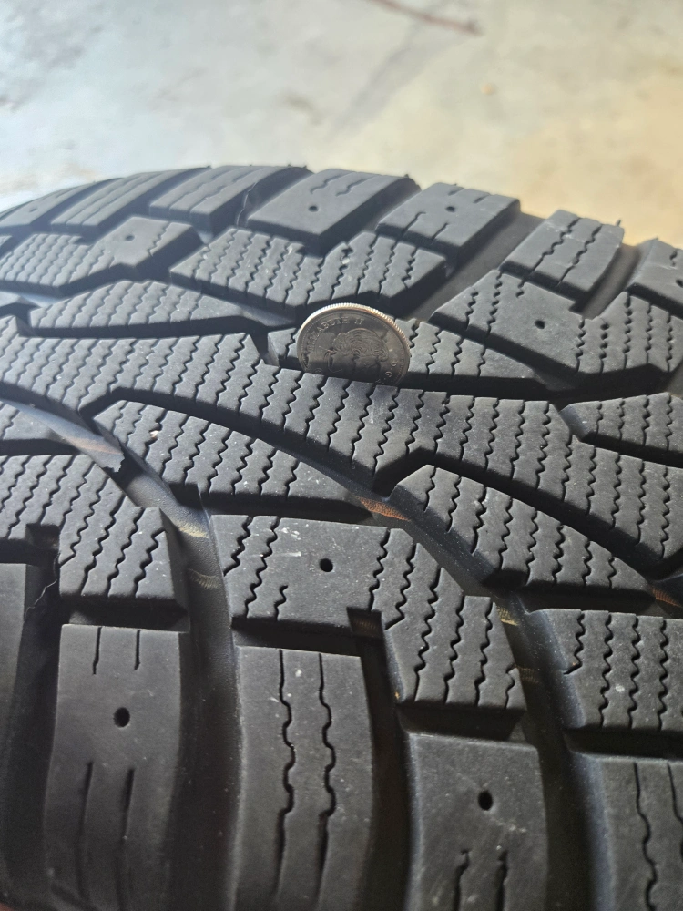 Selling a set of Uniroyal winter tires, size 205/55R16. They are mounted on rims. Good tread depth remaining, as shown by the quarter test!