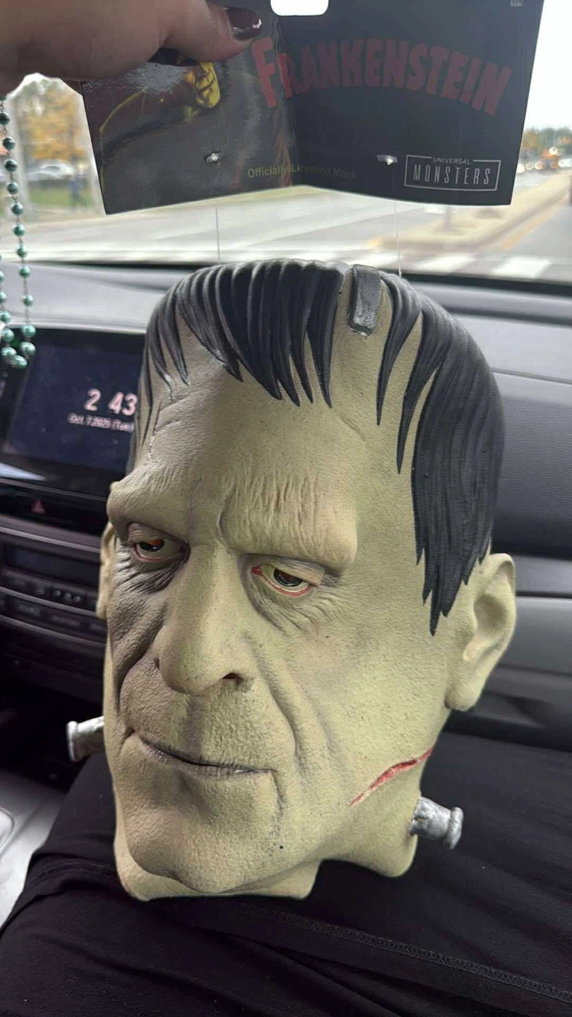 Selling a Frankenstein mask from Universal Monsters. It's in great condition and ready for Halloween or any costume party!