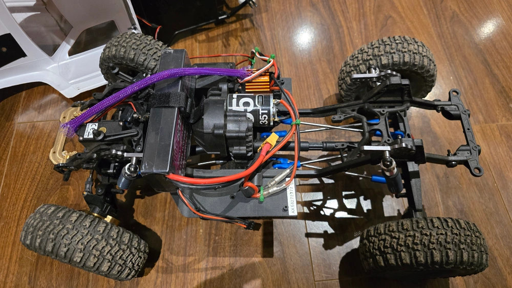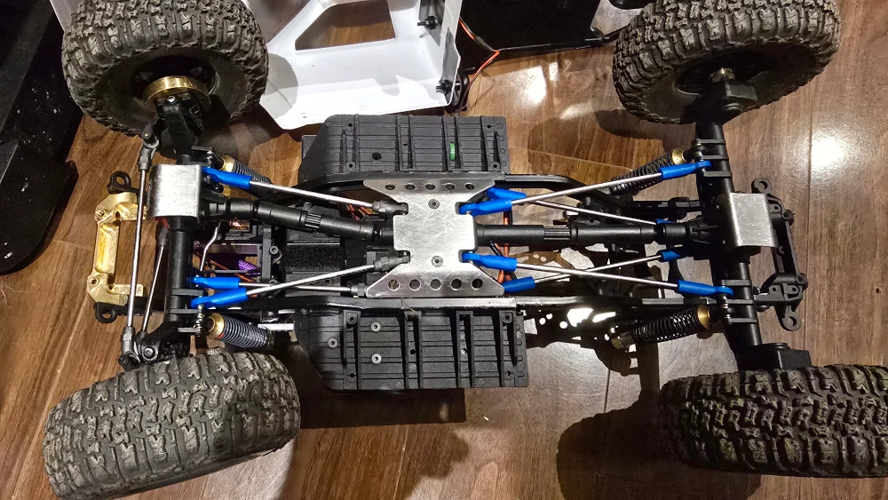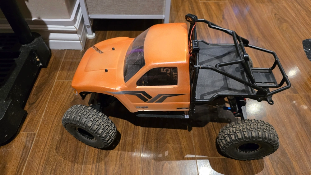 This SCX 10iii has almost everything done to it that you can. Just doesn't have a brushless motor, or 2 stage transmission. Mods: - proline body -proline XL 1.9 hyrax - proline 2stage foams - Brass inner tire rings x4 - beadlock rims - Brass widened - over drive front portals - Brass front portal covers - Brass front bumper mount - Brass lower shock spring stops - Stretched length wise by 20mm - skids I'm sure there's some missing Free delivery North Bay, will ship on buyers dime Comes with truck, battery, flysky reciever.