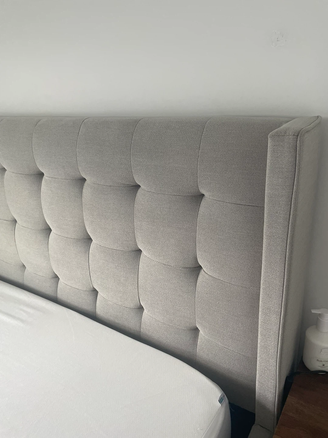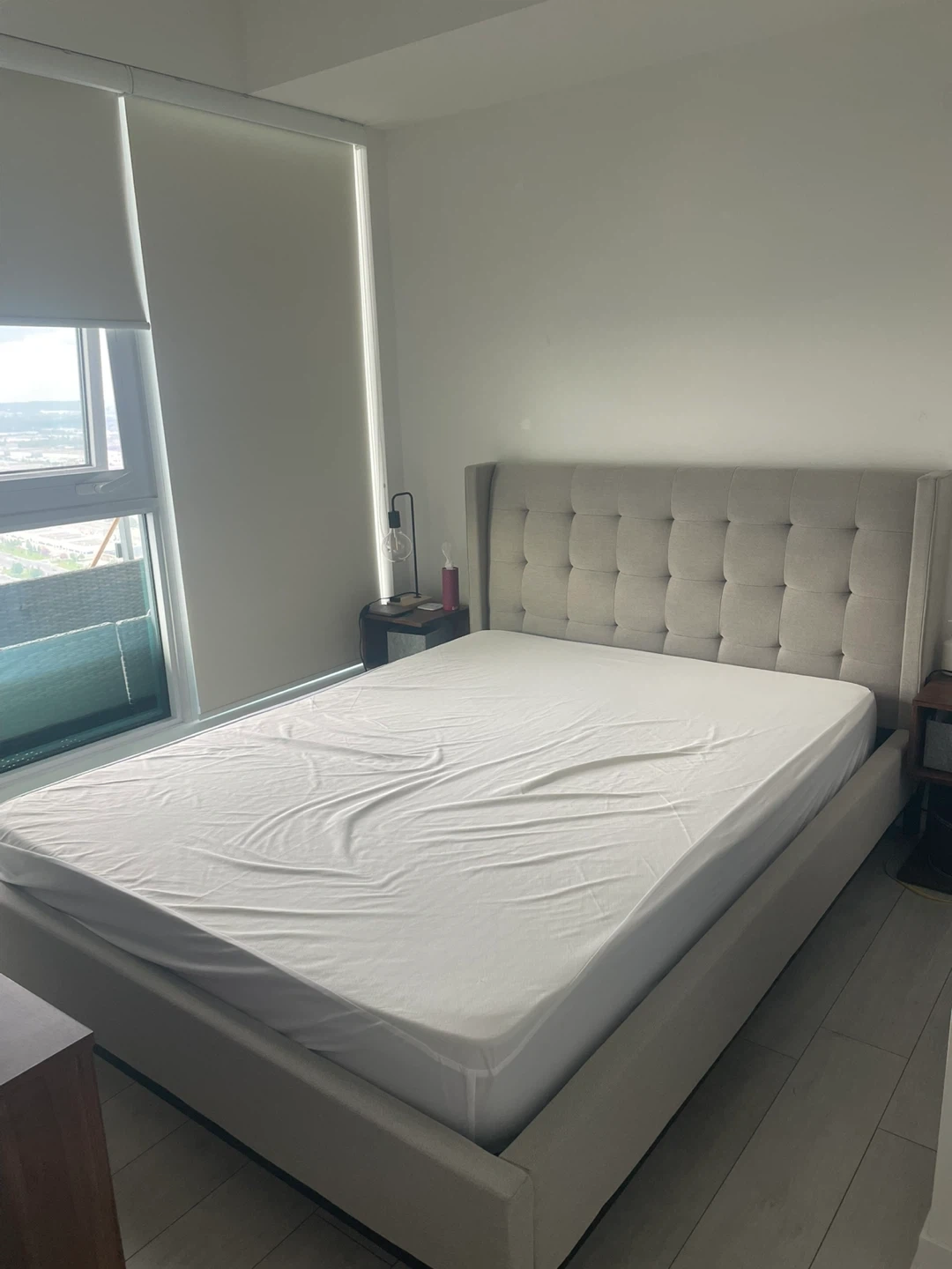 Selling a queen size bed frame with an upholstered headboard. It's in great condition and would be a lovely addition to any bedroom. Must go between October 25 to 28. Delivery possible after full prepaid.