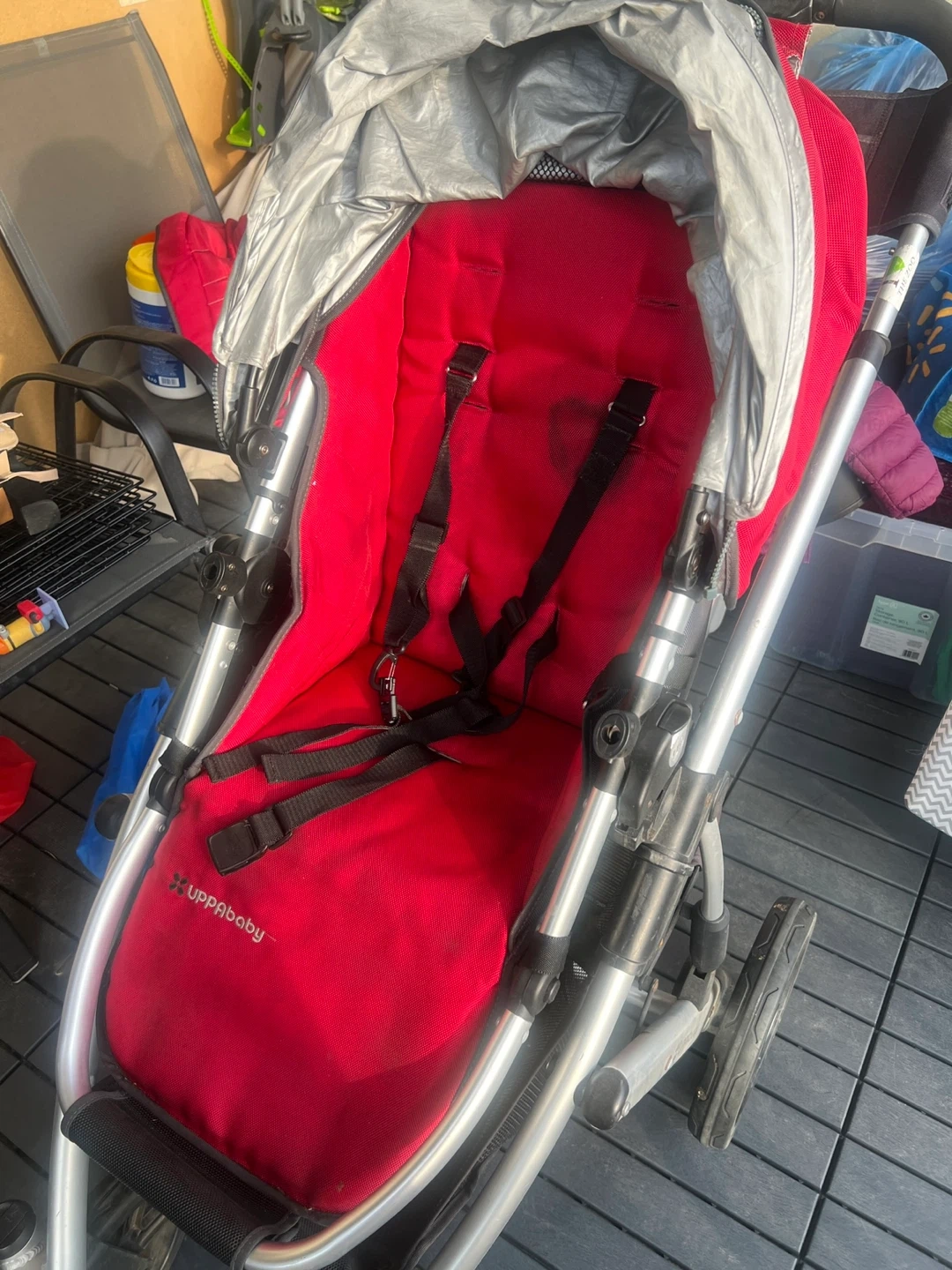 Selling a red UPPAbaby stroller. It's in good condition and ready for a new family. Perfect for walks around the neighbourhood or trips to the park!