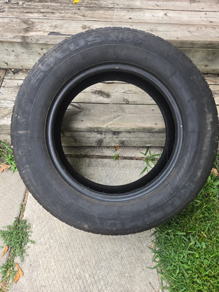 Selling a used Kumho Solus KH16 M+S tire. The size is 225/65R17. It's in decent condition, ready for a new vehicle