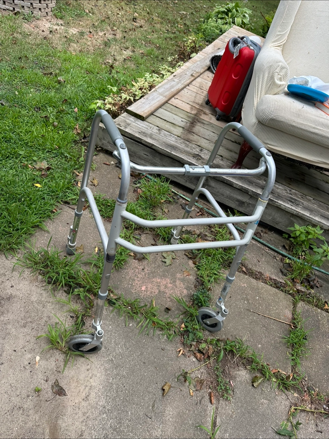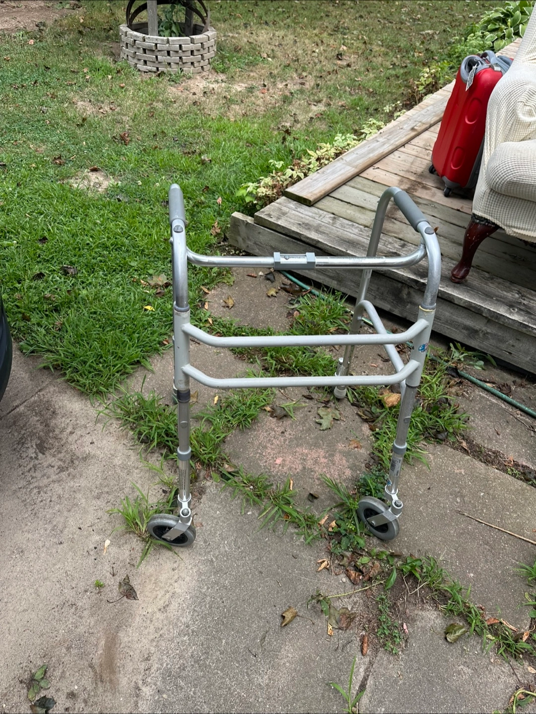 Selling a used walker with wheels. It's in good working condition and ready to help someone get around safely. Perfect for indoor or outdoor use!