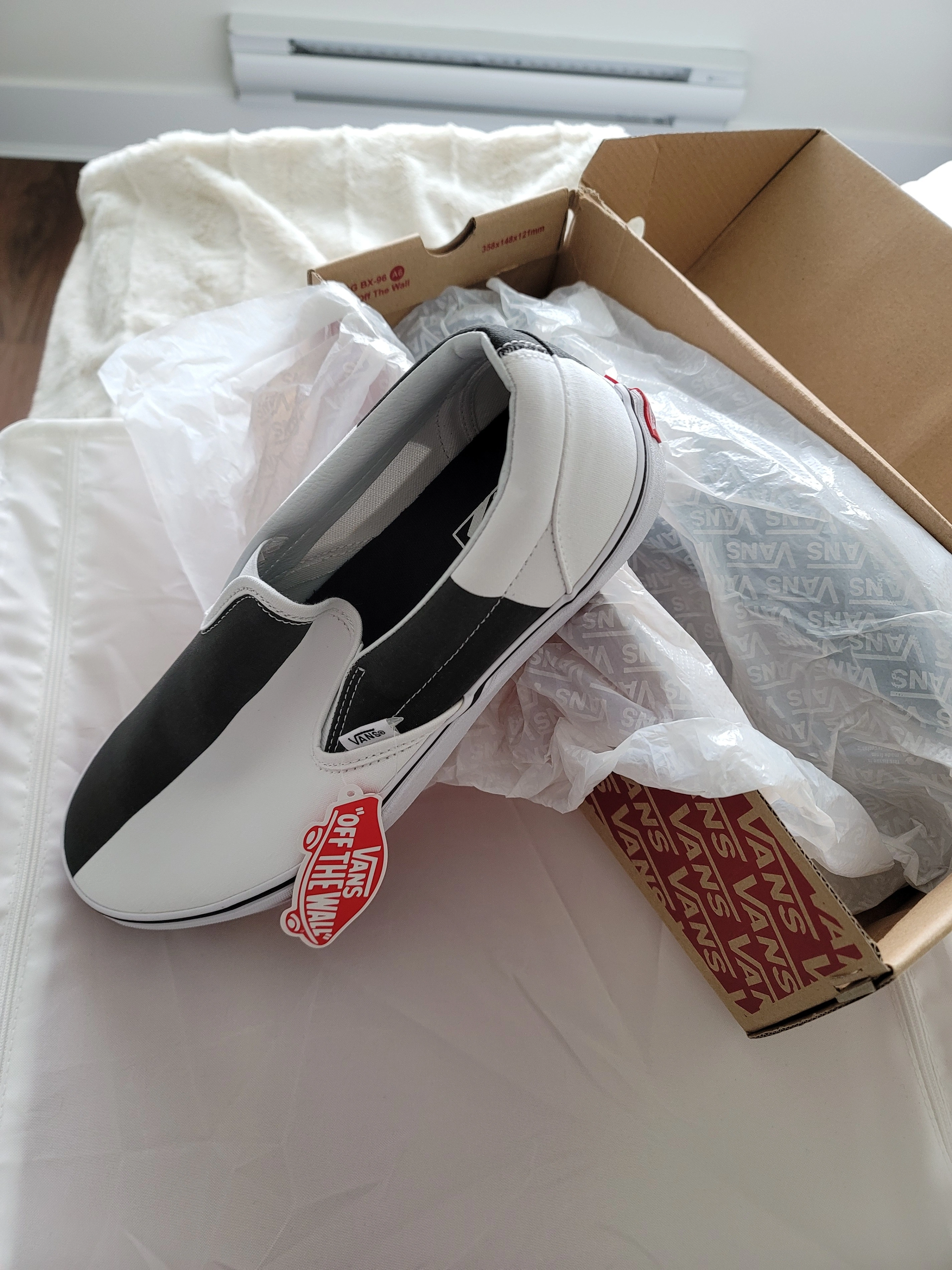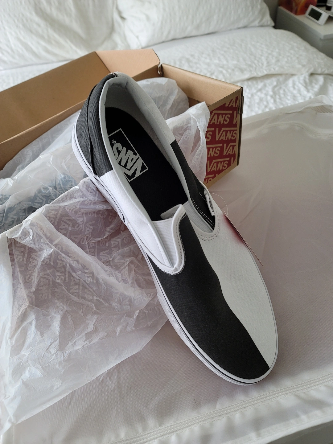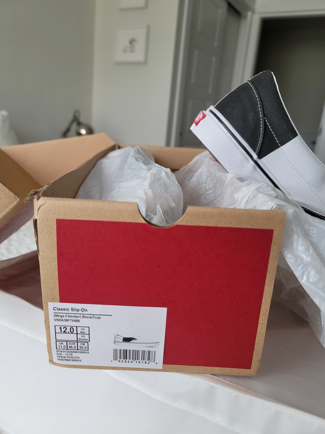 ~ IN THE SOUTH SURREY/WHITE ROCK AREA! ~ SNEAKER BLOWOUT!!! ~ REASONABLE OFFERS CONSIDERED, LOW BALL OFFERS WILL BE IGNORED!!! ~ You get a Brand New, Never Worn pair of VANS "MEGA CHECKER" Classic Slip-On in Black/True White ~ VN0A38F7VMB ~ Size 12 Men's ~ In Original Box, with Original Tags! ~ This is an amazing looking pair of VANS Slip-On Classics in Black and True White ~ Dress up or just Casual. ~ No tax to pay or shipping. ~ Cash Only & you pick up. ~ Serious Buyers & No Low Ballers please. *** NOTE *** Please see my other listings as I am currently selling many household items such as Queen Size Pillow Cases and Duvet Covers, Backpacks, Bathroom Mats, Duffle Bags, Suitcases, Shoe Storage, Lots of various sizes of BRAND New Picture Frames and also BRAND NEW, NEVER WORN SNEAKERS etc.