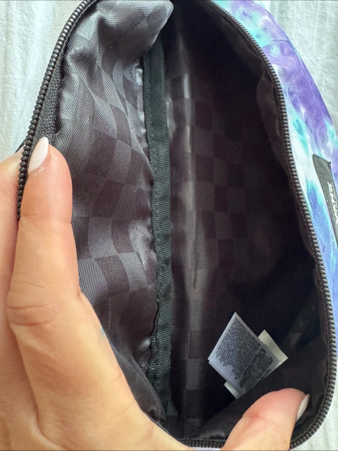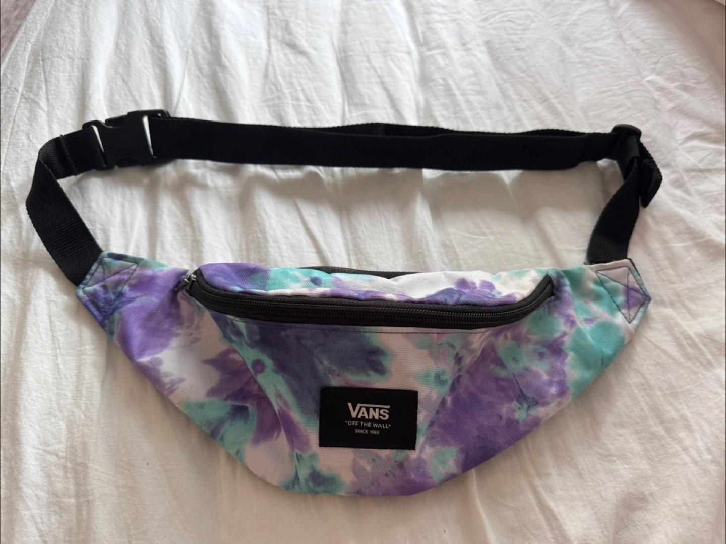 Selling a cute Vans fanny pack with a tie-dye pattern! It's in great condition and perfect for carrying your essentials. The inside has a cool checkerboard pattern too.