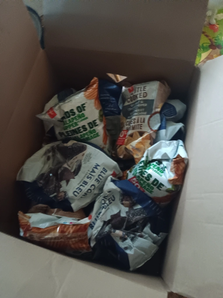 i have a box of chips including President's Choice Jalapeno Popper chips, President's Choice Blue Corn chips, and Little Cooked chips all sealed asking $ 1 each 647-203-0411