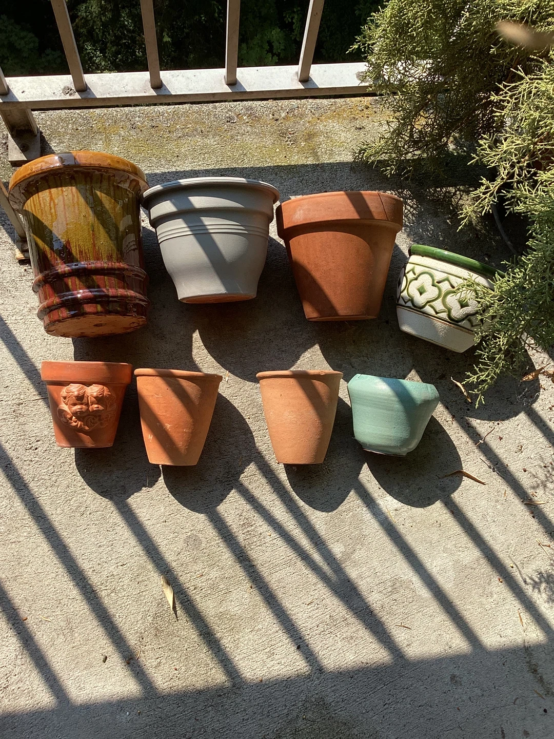 Selling a variety of used flower pots. Sizes vary from small to large, and they come in different colours and materials. Perfect for adding some greenery to your space! The very large pot sits on a moveable stand. The price for the combination is$35. All other pots are between $5 -$10. Make an offer!