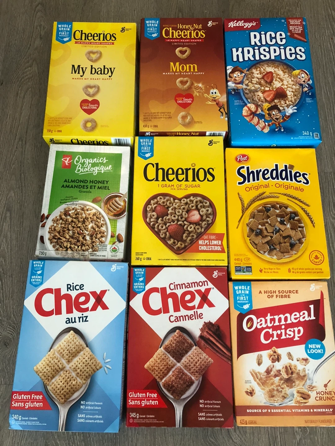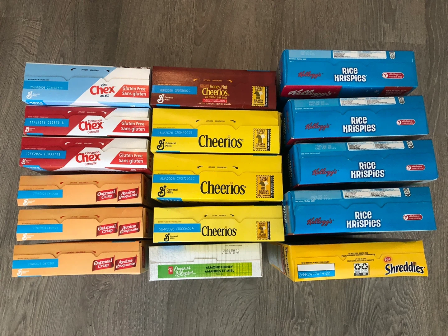 Selling a variety pack of cereal boxes. Includes : Rice Krispies Shreddies Cheerios Organics Biologique Almond Honey Rice Chex Cinnamon Chex Oatmeal Crisp Honey Crunch All boxes are unopened and ready to enjoy! Meet at Islington Station $1.5@each