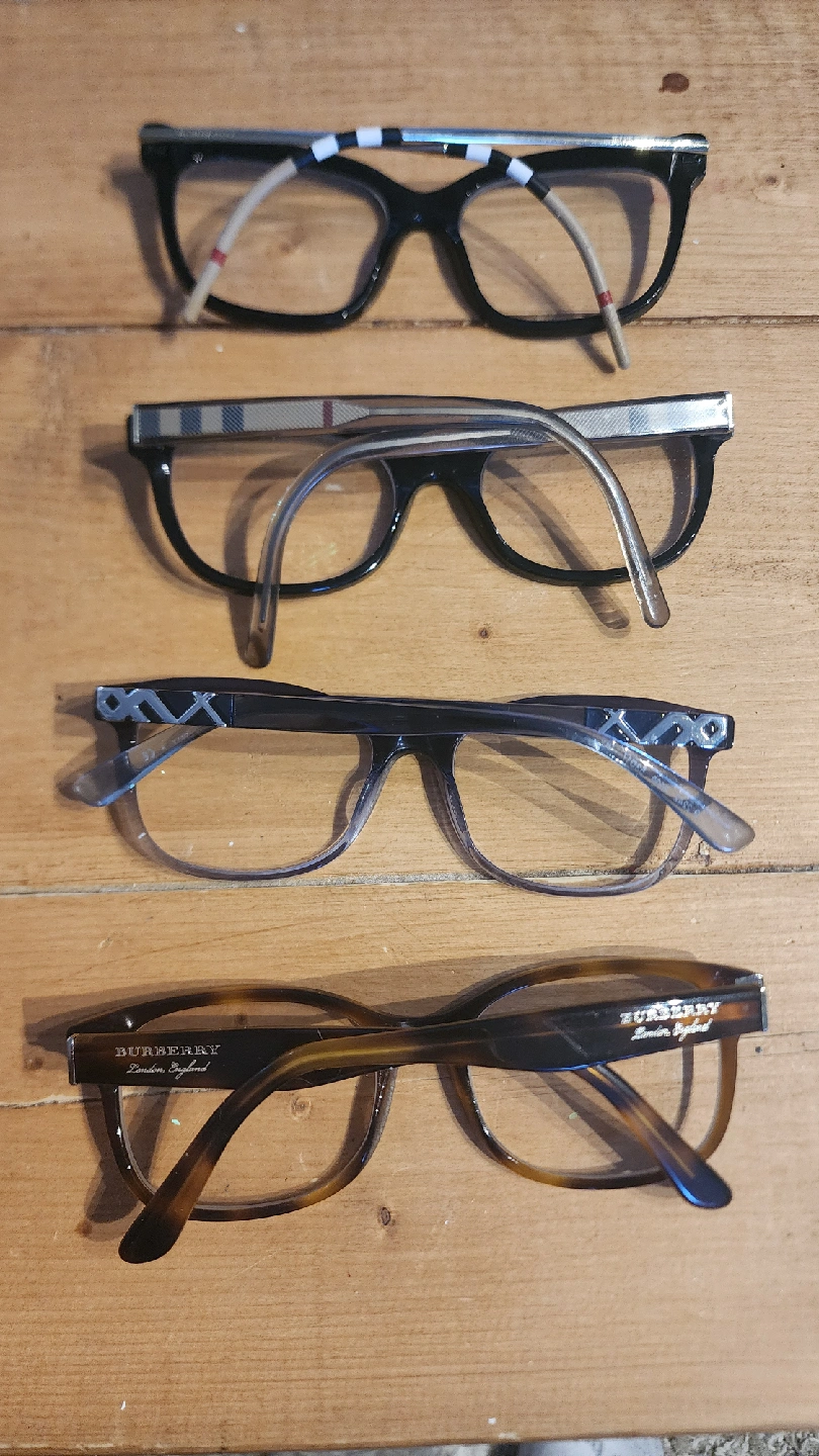 Selling various burberry and rayban eyeglasses frames. they currently have old prescriptions but can be changed out to fit yours. They're in great shape and ready for a new owner! Feel free to message me with any questions you might have. selling each one individually.