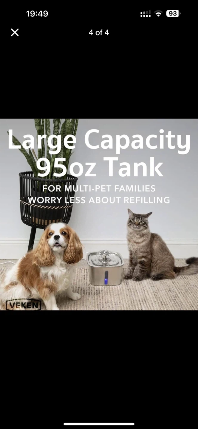Keep your furry friends hydrated with this VEKEN pet water fountain! It has a large 95oz capacity tank, perfect for multi-pet families, so you can worry less about refilling. It's also easy to clean as it's hand wash only. It's BPA free and made of 304 food-grade stainless steel, so it's safe for your pets!