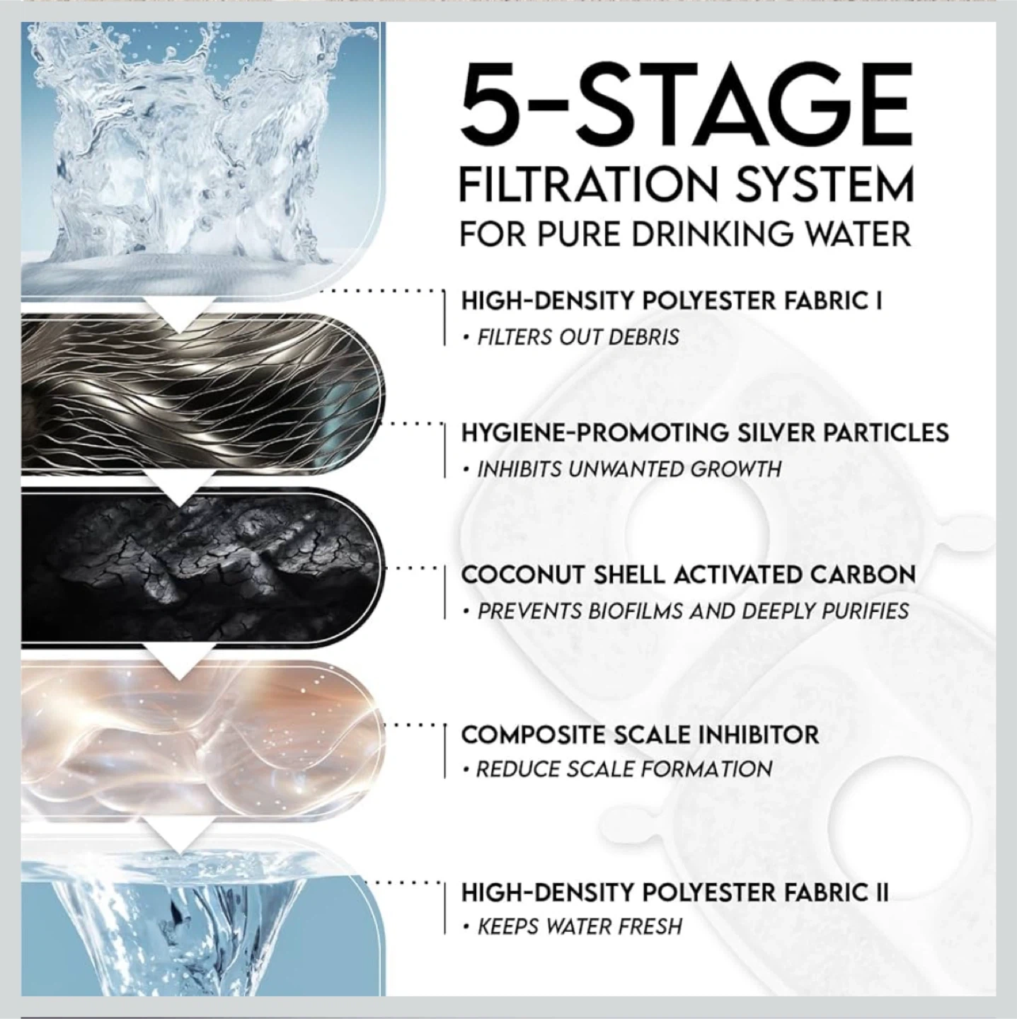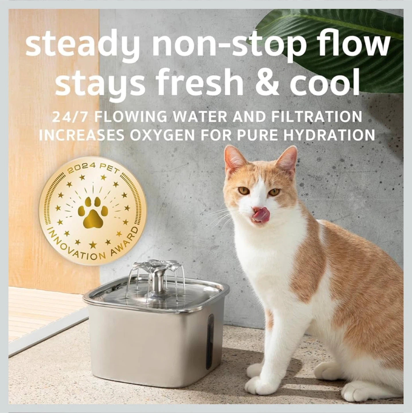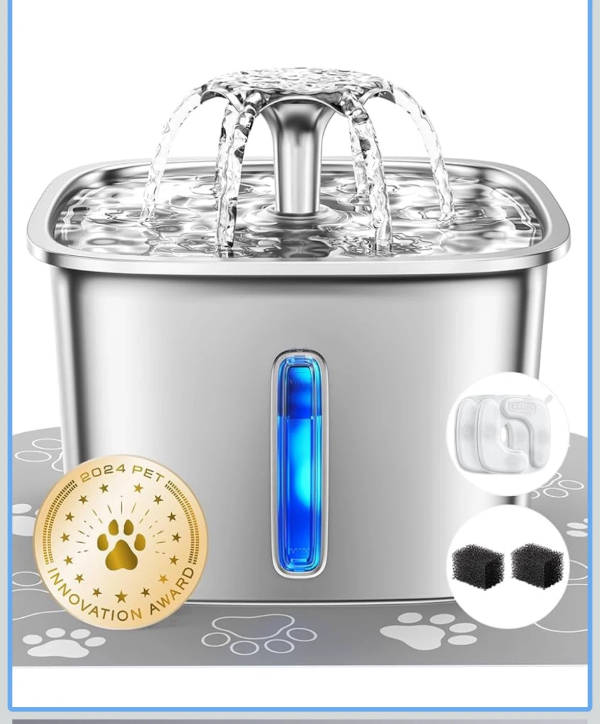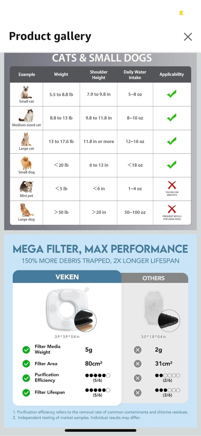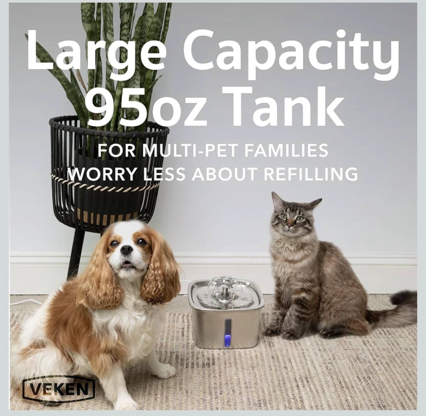 I'm selling a Veken pet fountain with a 95oz large capacity tank. It's designed for multi-pet families, so you don't have to worry about refilling as often! The fountain features a 5-stage filtration system for pure drinking water, including high-density polyester fabric, hygiene-promoting silver particles, coconut shell activated carbon, and a composite scale inhibitor. It also has a mega filter for max performance!