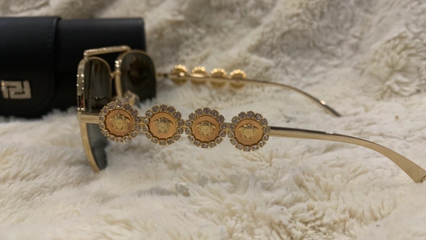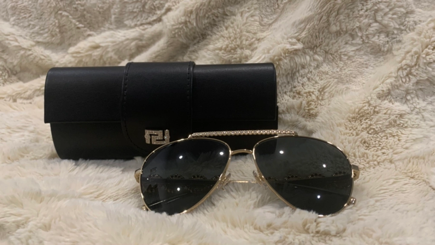 Gold-framed aviator sunglasses. Features Medusa head accents. Includes a black case. Made in Italy. Given to me as a gift but it’s no longer my style.