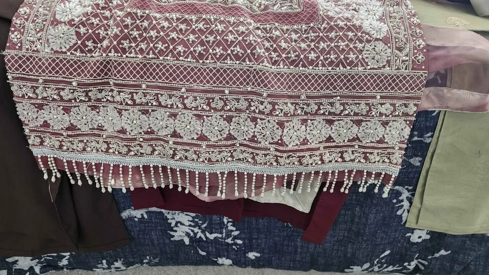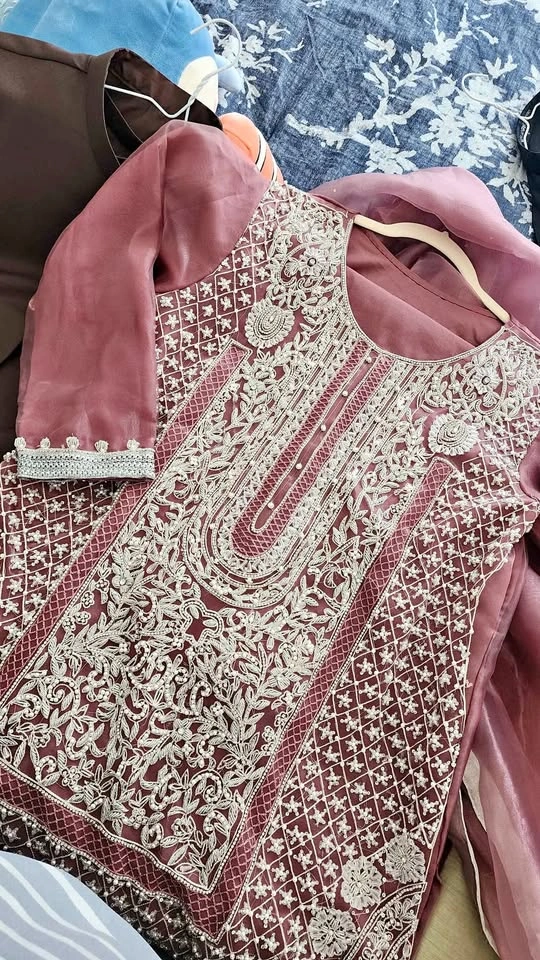 New, received the wrong size. Fits a wide medium, or a large. Comes with dupatta and straight simple pants. If the ad is up, it's available. Lightly negotiable, serious buyers only.
